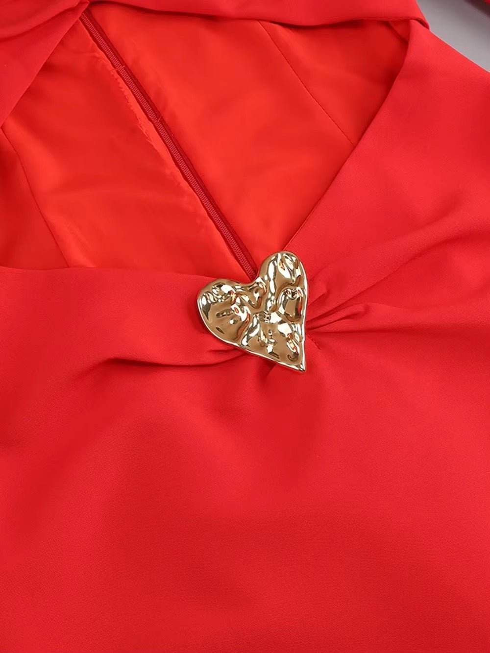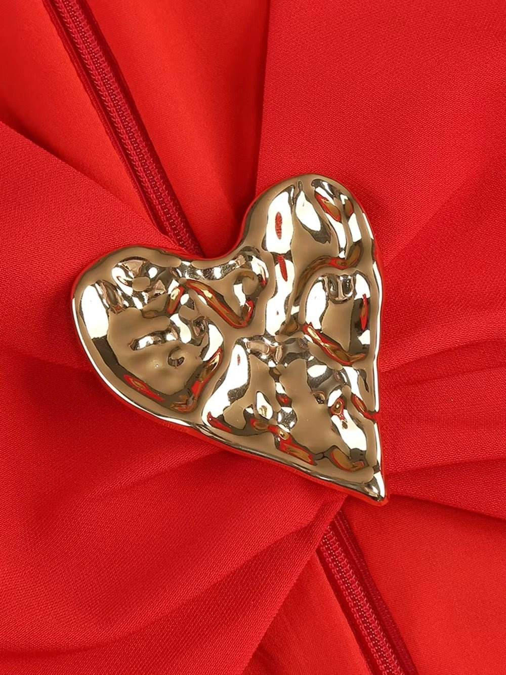 The intricate metal heart detail is the highlight of this dress, adding a touch of glamour and sophistication. It's the perfect statement piece for those who want to stand out from the crowd.