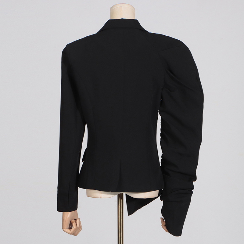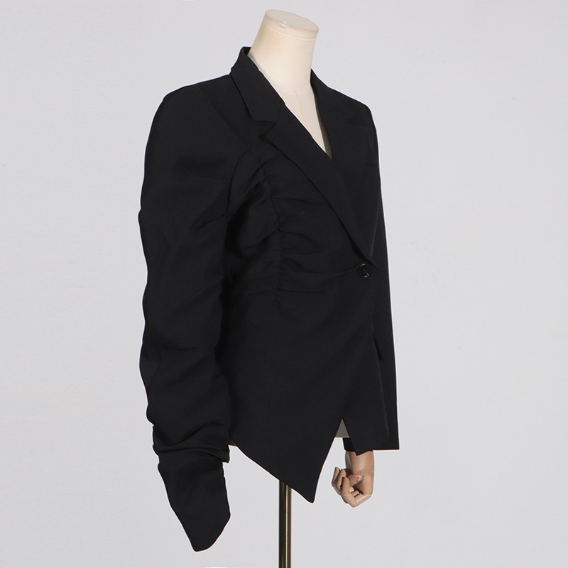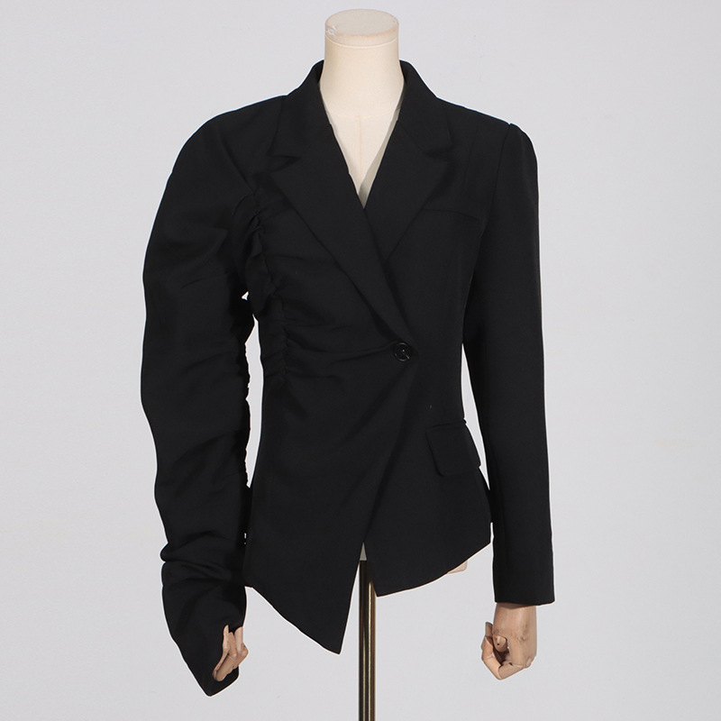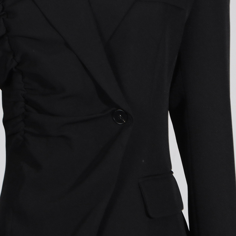 Irregular Asymmetric Design Spring Pleated Single Button Blazer