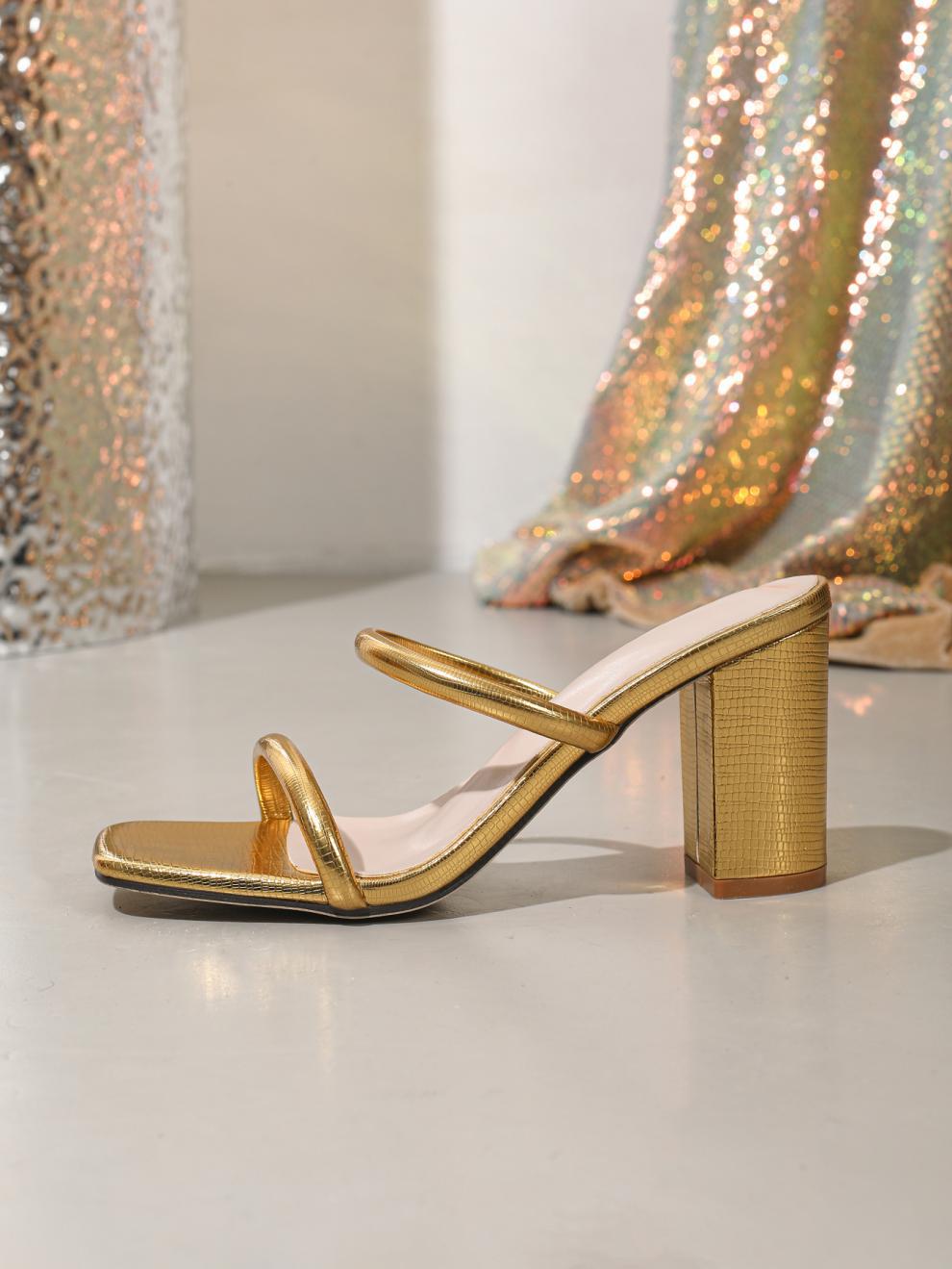 Ladies Elegant Sexy Strap Gold High Heels Shoes
