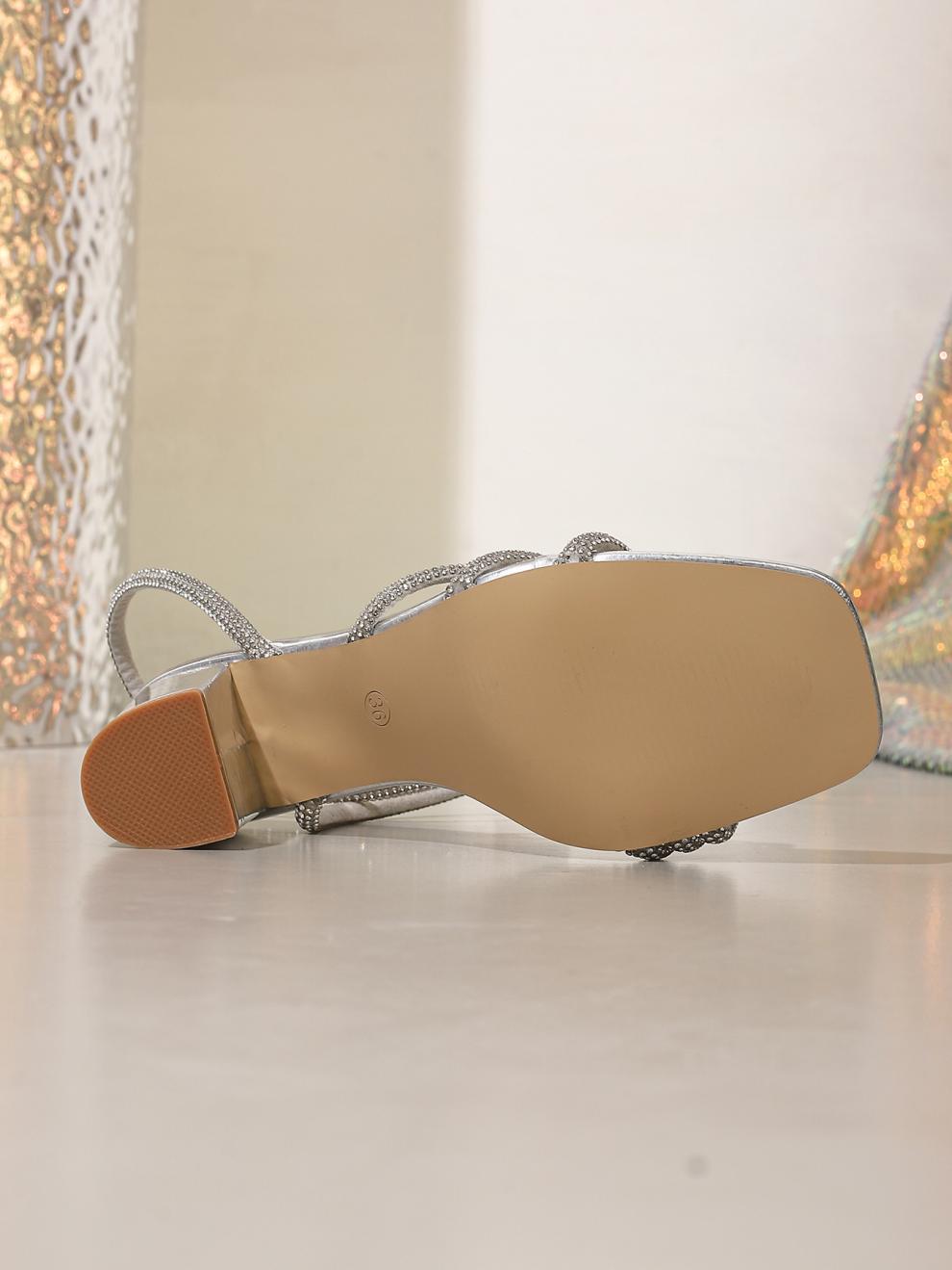Ladies Rhinestone Lace up Cross Back Strap Square Toe Open Toe