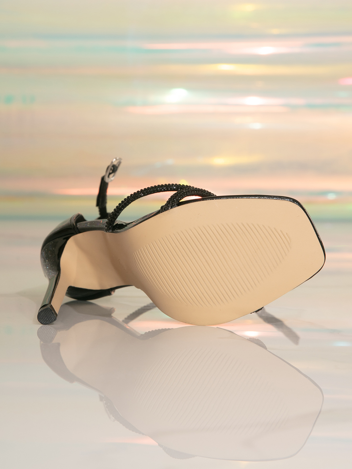 Lady Sexy Stylish Super High Heel Black Crystal Sandals