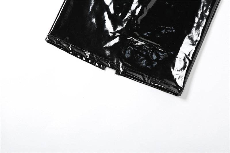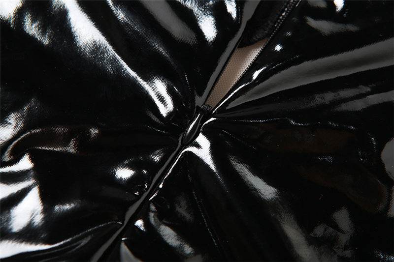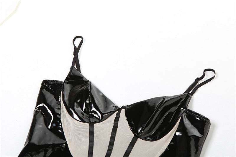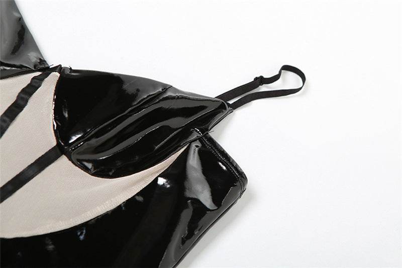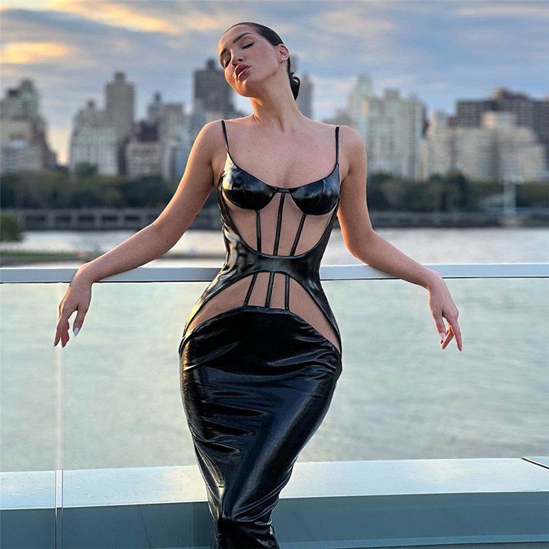 Low Cut See through Slim Fit Slit Faux Leather dress