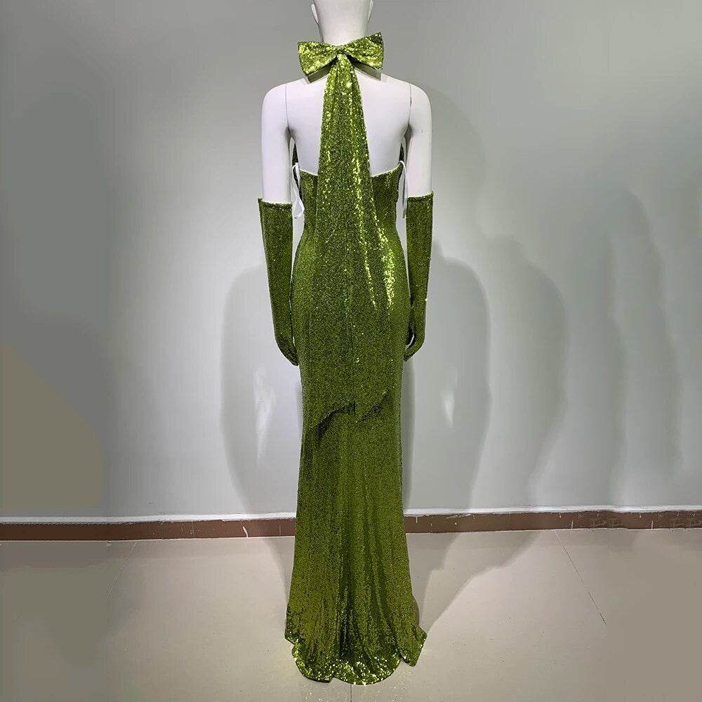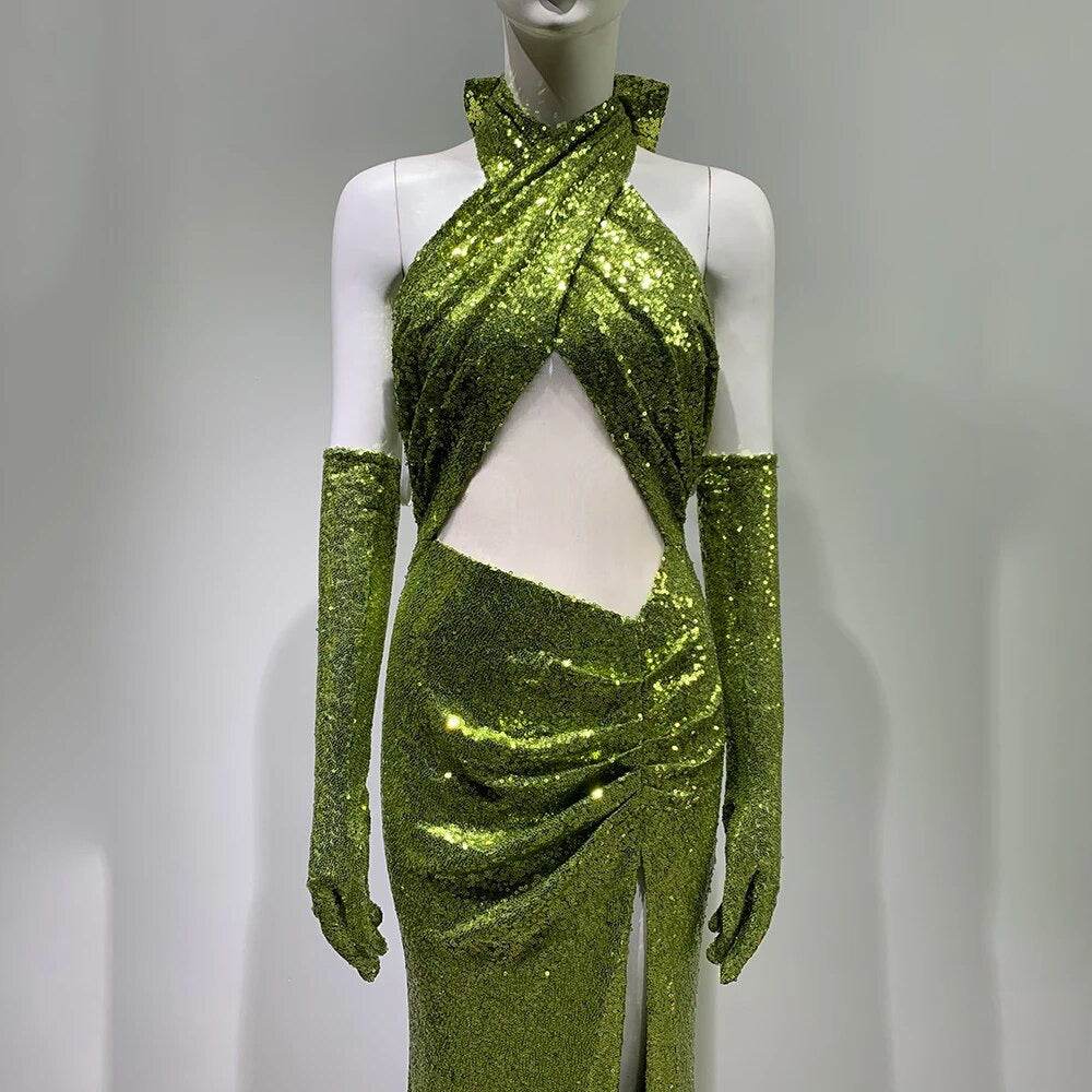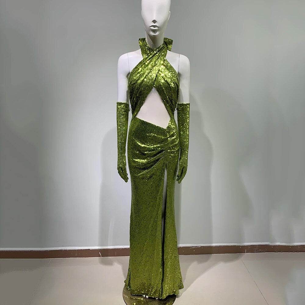 Open Back Sleeveless Hollow Mermaid Sequins Long High Split dress