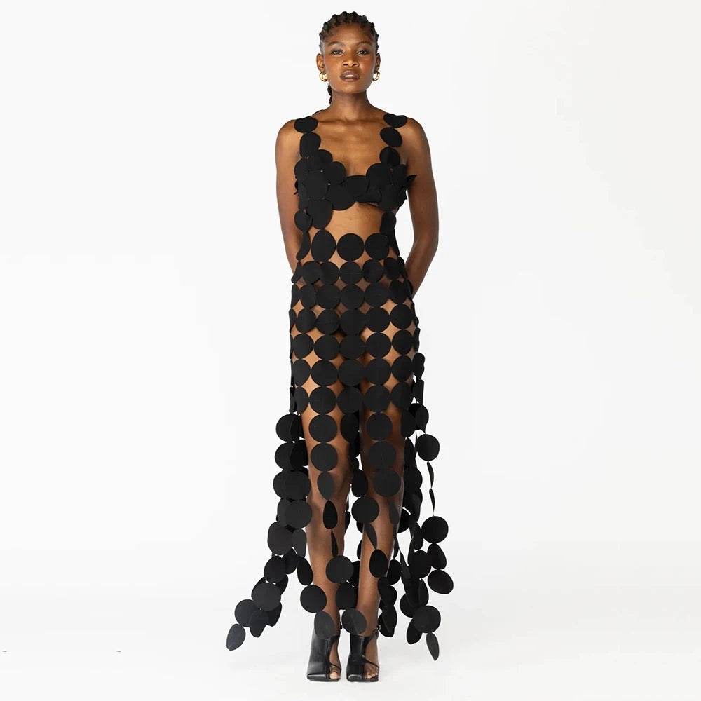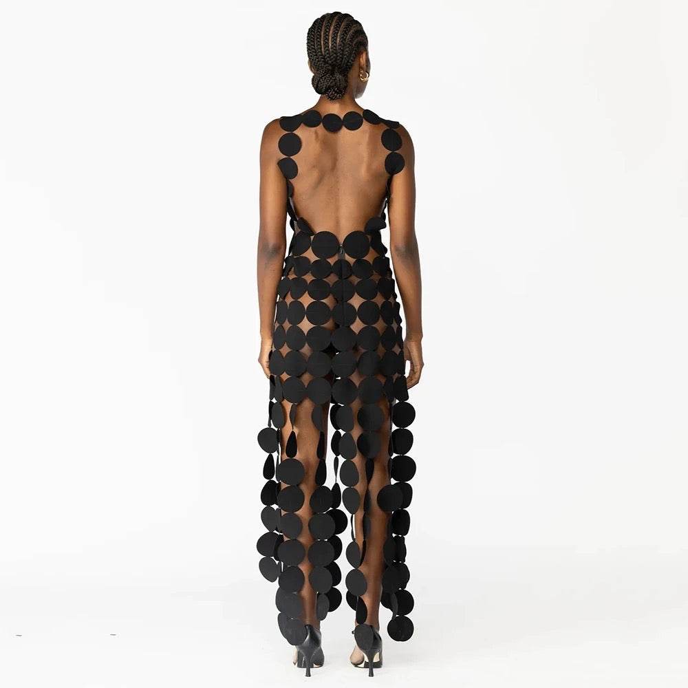 Open Back V-Neck Round Hollow Sleeveless Slim Fit Long Dress