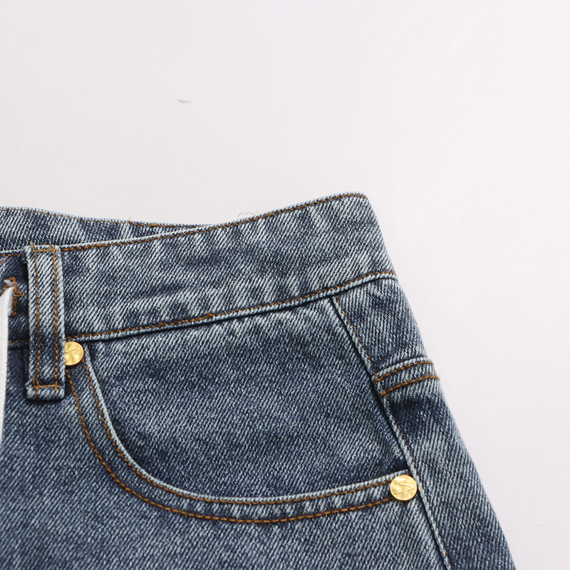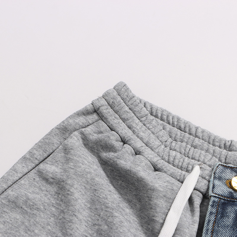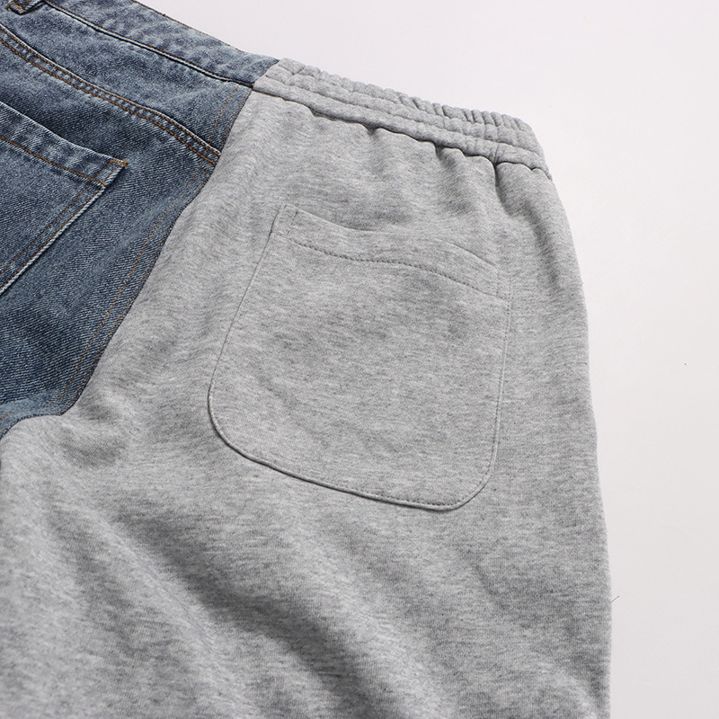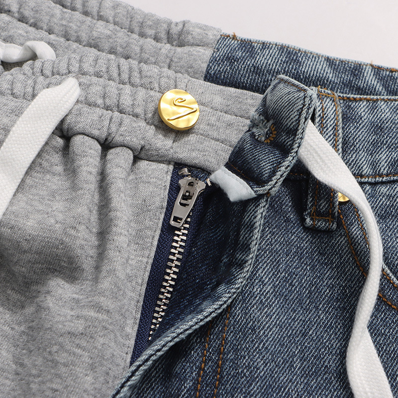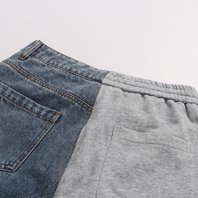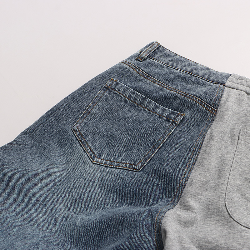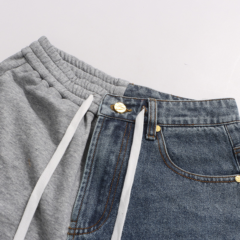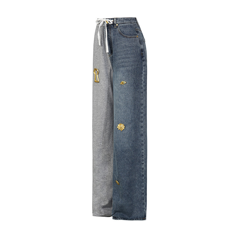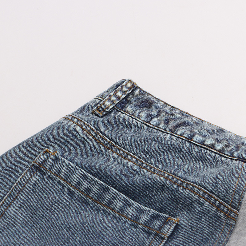 Street Stitching Jeans Niche Contrast Color Straight Leg Trousers