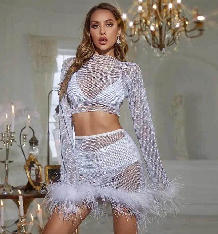 Rhinestone,Lace/Tulle/Fishnet,Feather