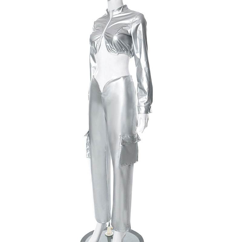 Sense Cropped Long Sleeve Faux Leather set