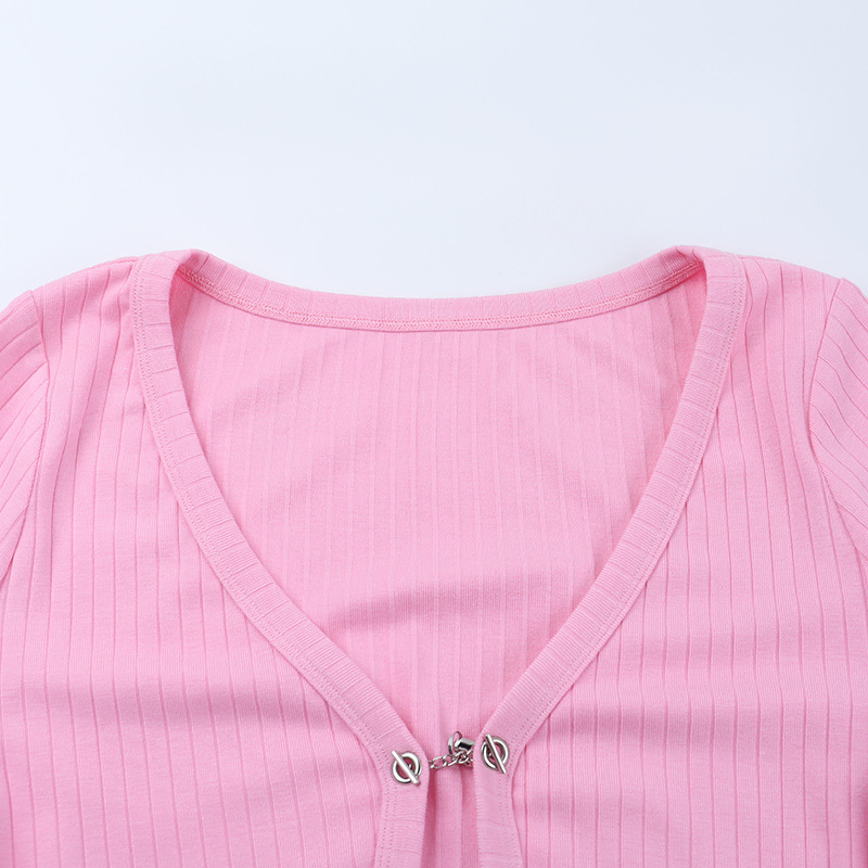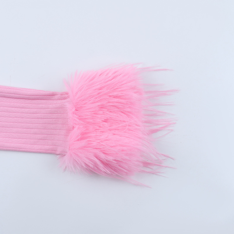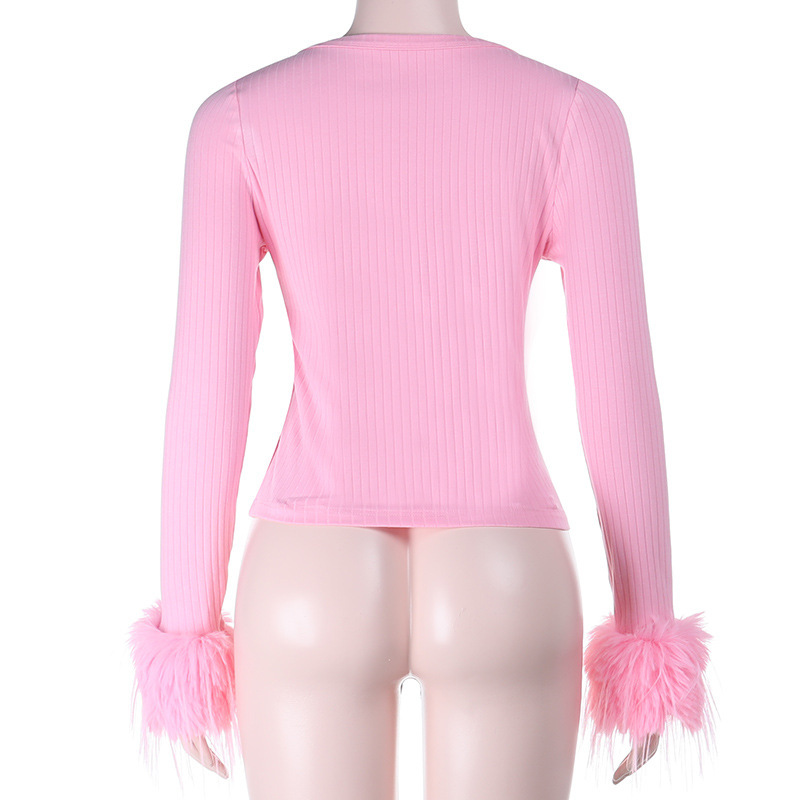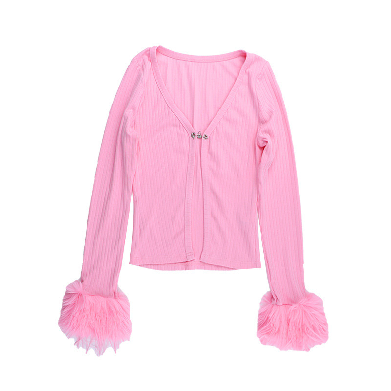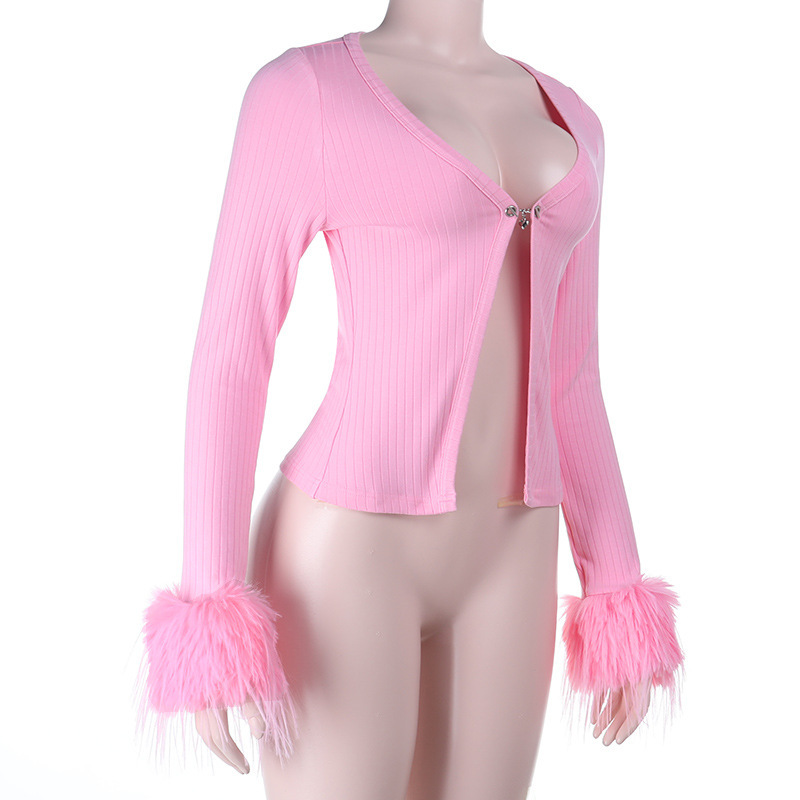 Deep V Plunge neck Long Sleeve Ostrich Feather Pink Cardigan Top
