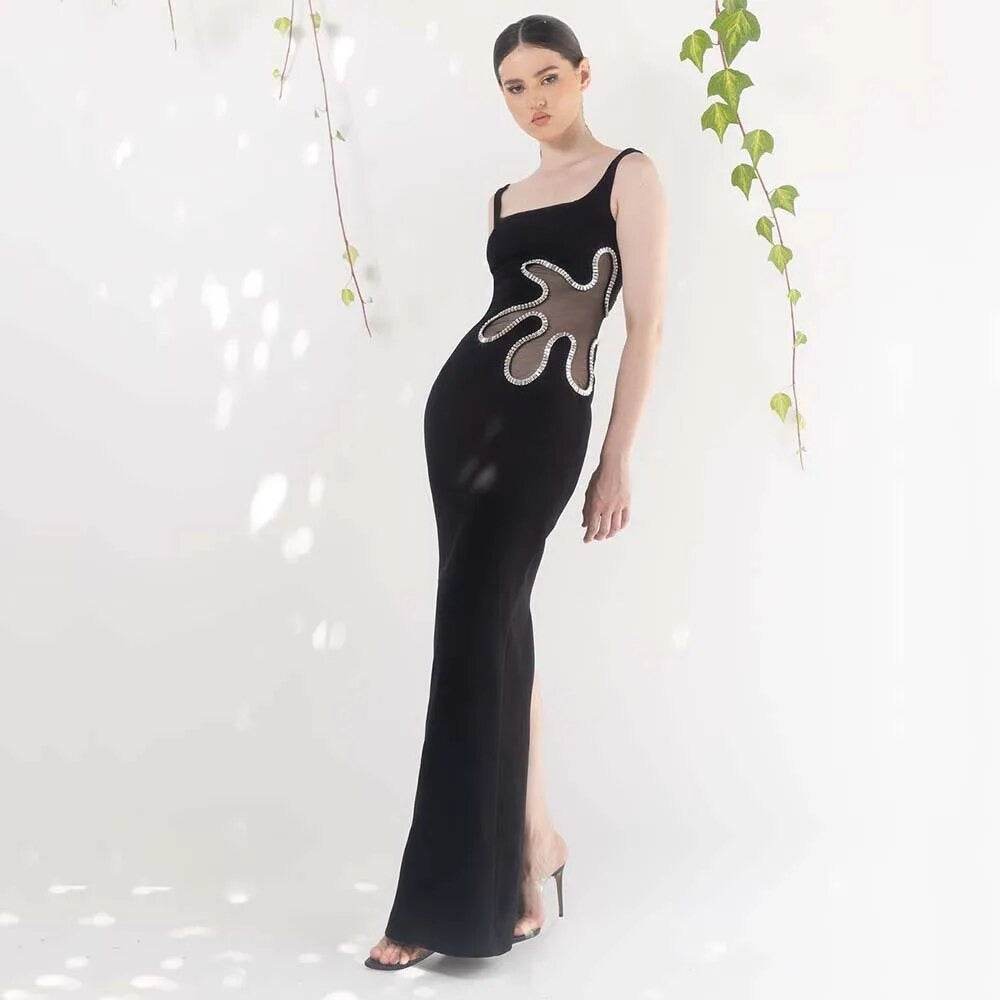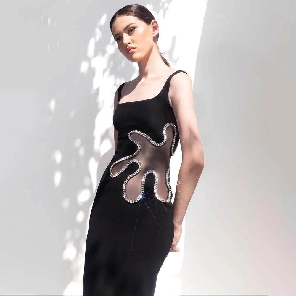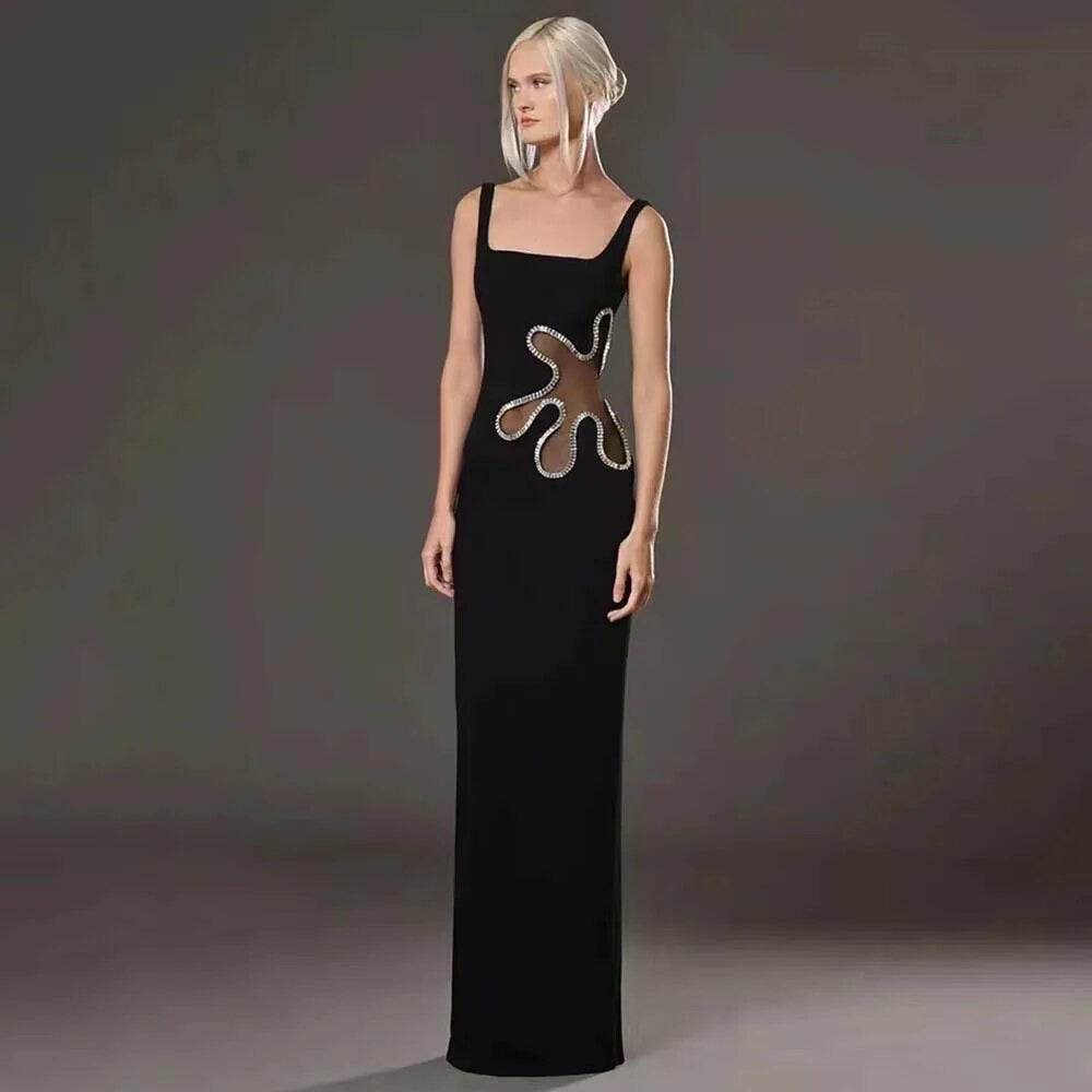 Sleeveless Waist Hollow Diamond Long Bandage Dress