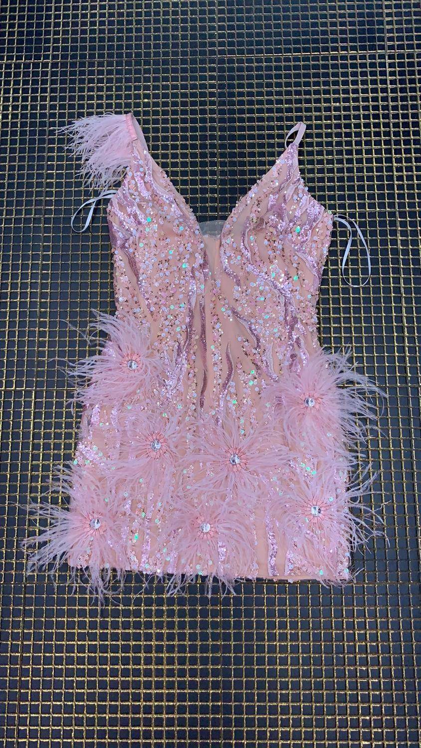 Spaghetti Straps V Neck Feather Sequins Dress
