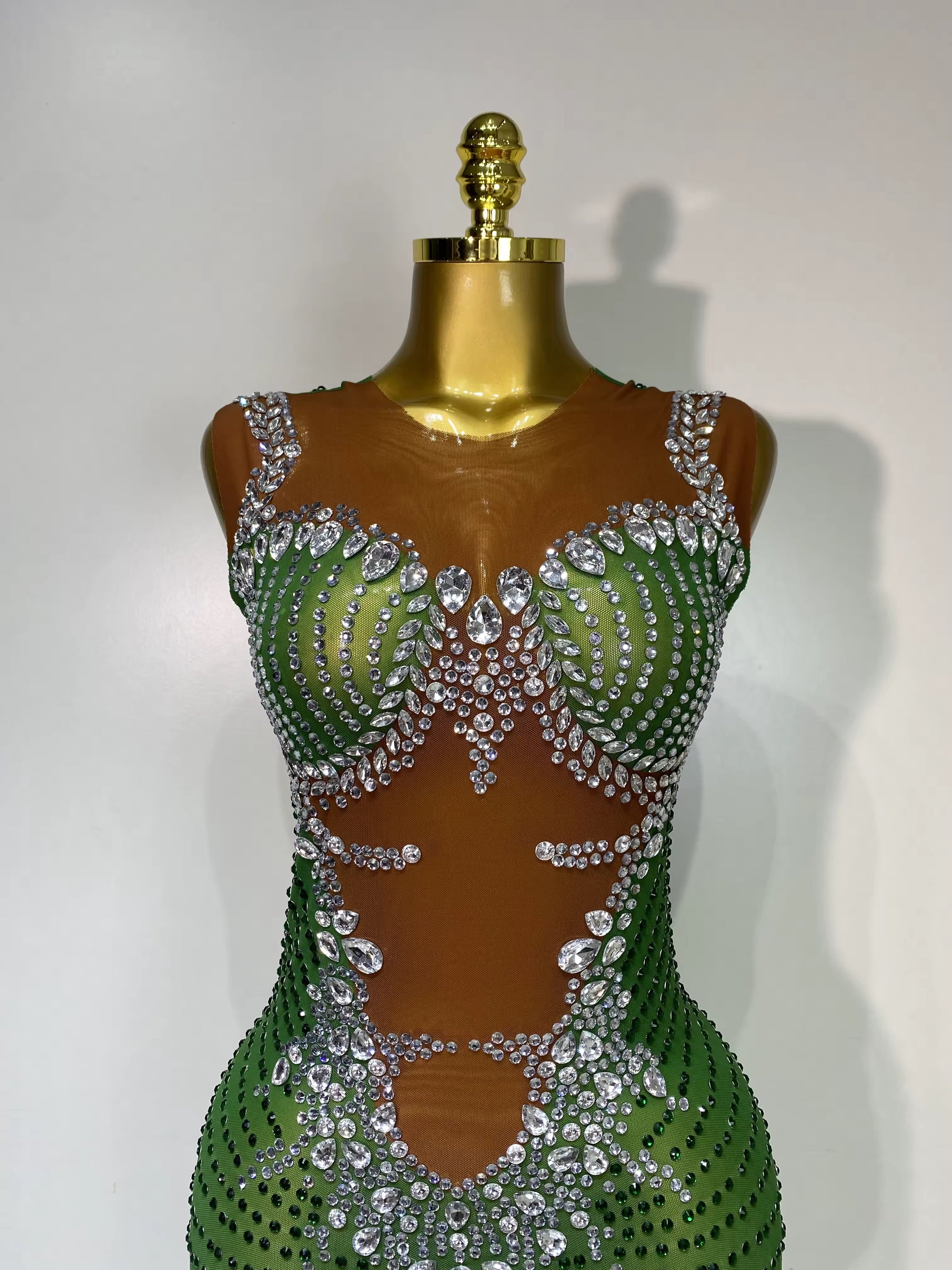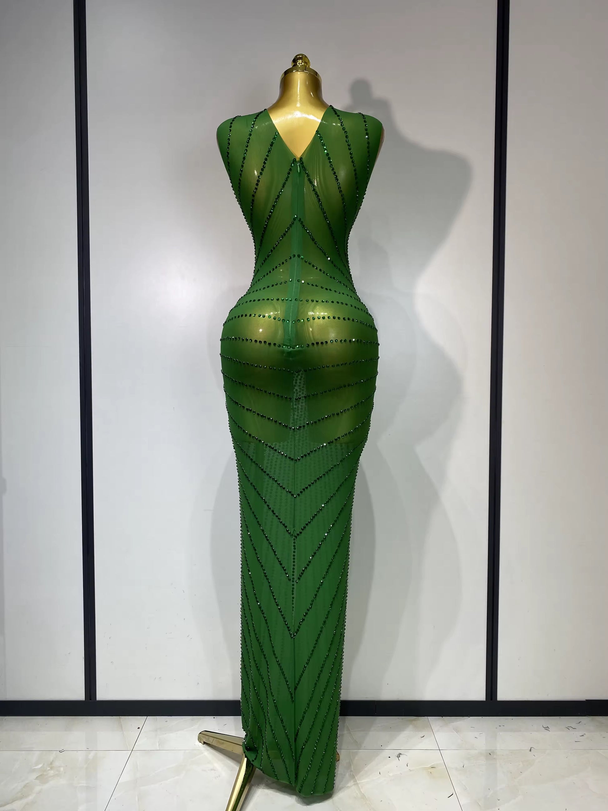 The Sparkly Rhinestones Sleeveless Long Dress is a stunning addition to any wardrobe. Crafted with meticulous attention to detail, this dress features an elegant sleeveless design that enhances the silhouette.