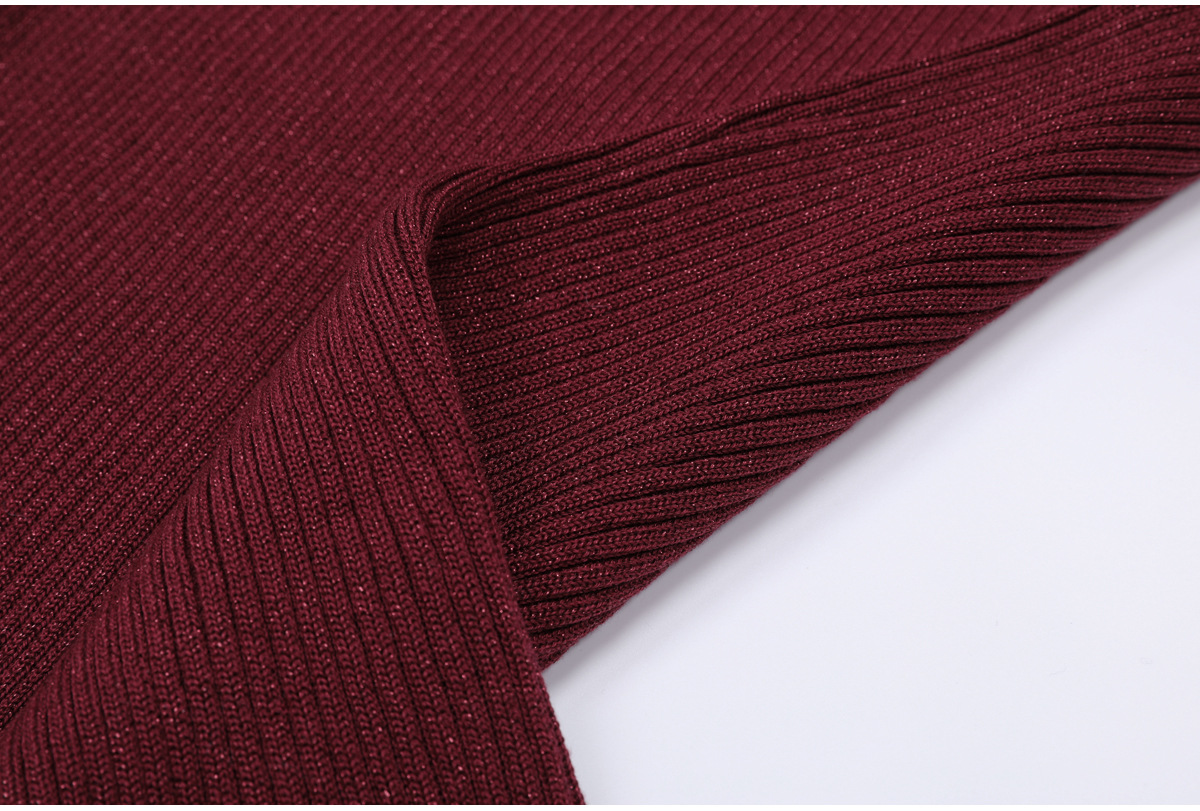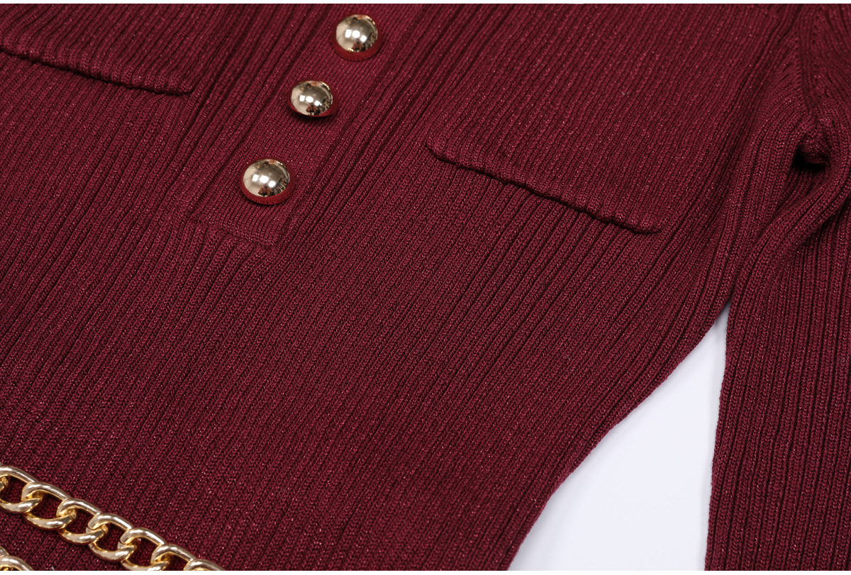 Knitted V neck Slim Fit Slimming Chain Belt Long Sleeve Dress