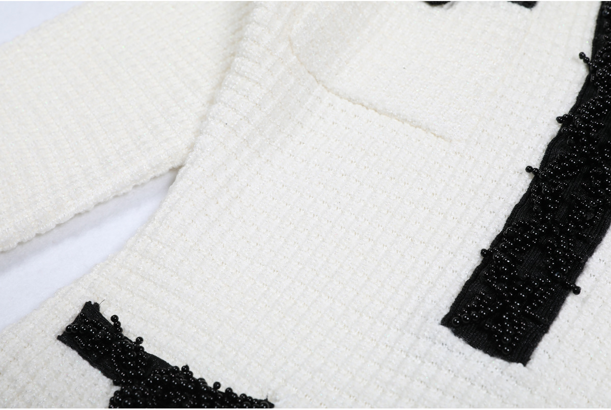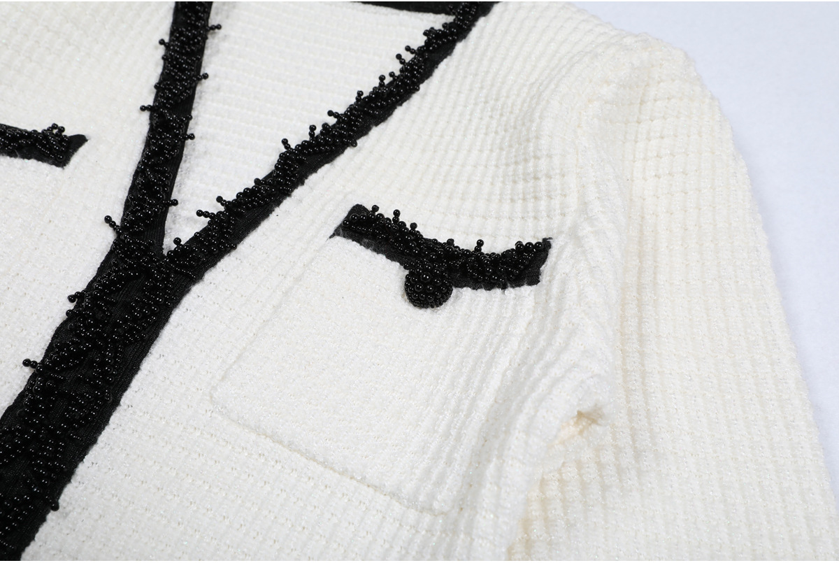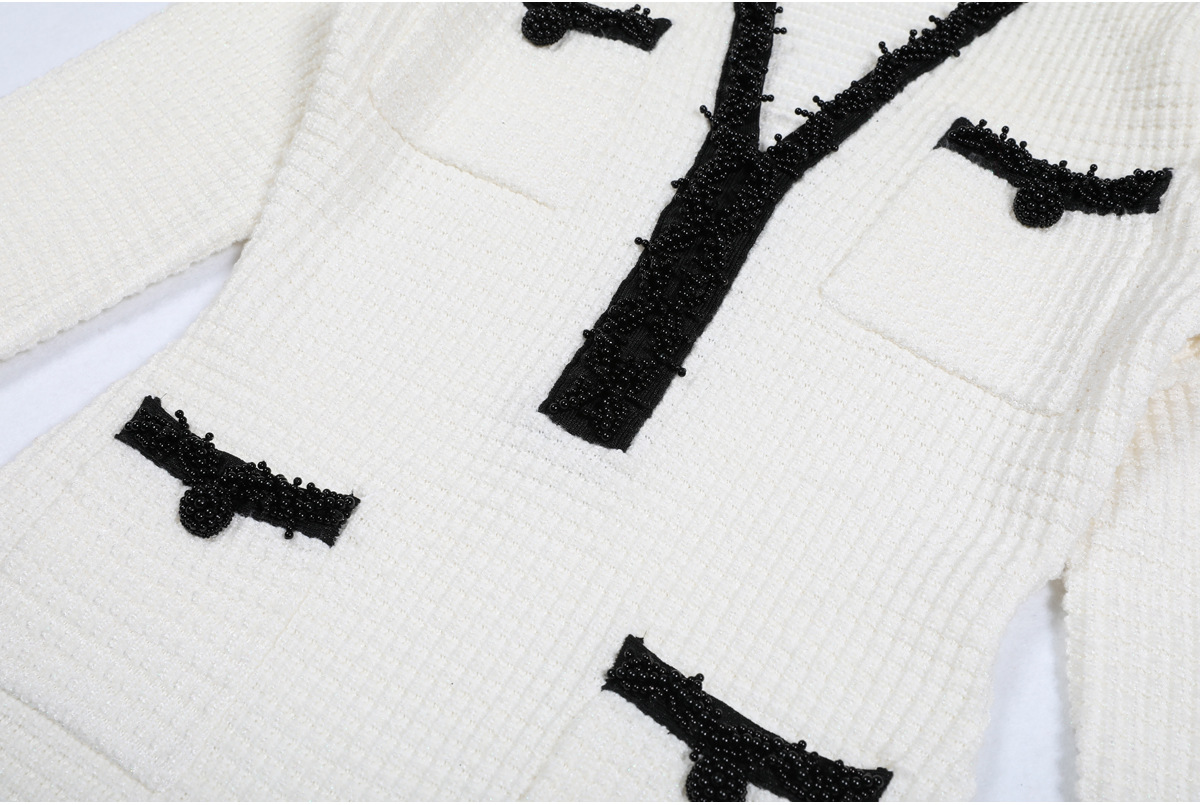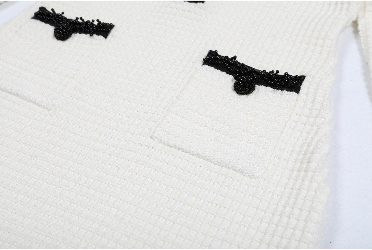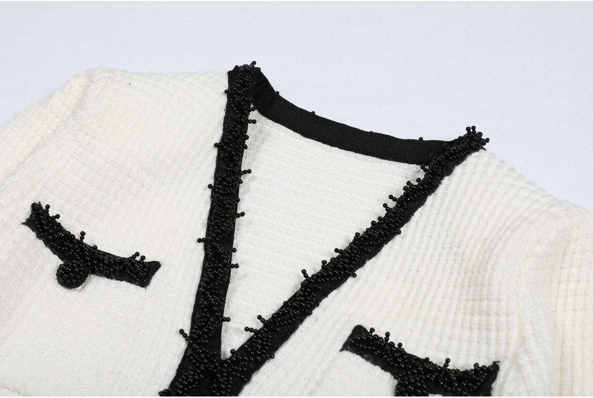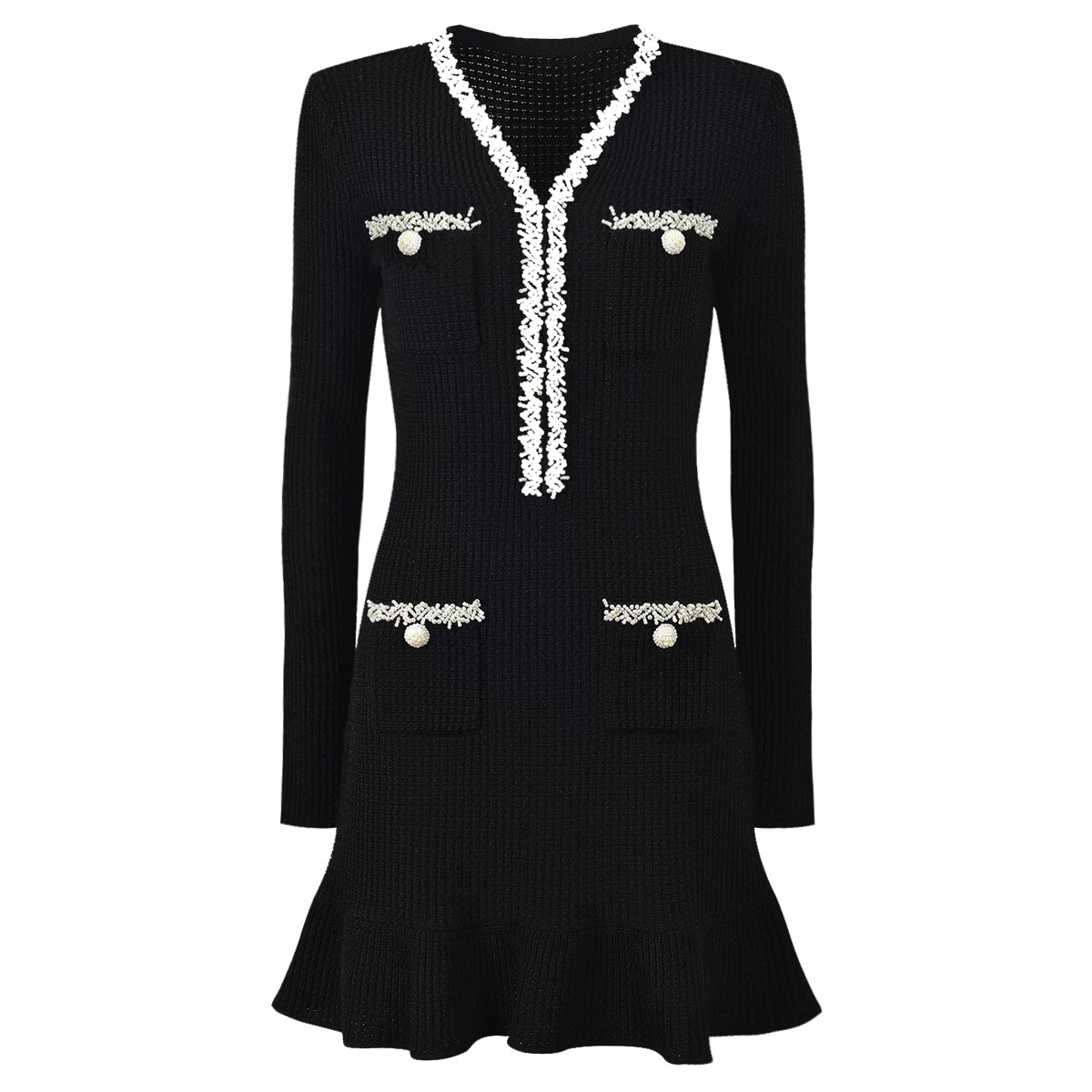 Knitted V neck Slim Fit Slimming Beads Long Sleeve Dress
