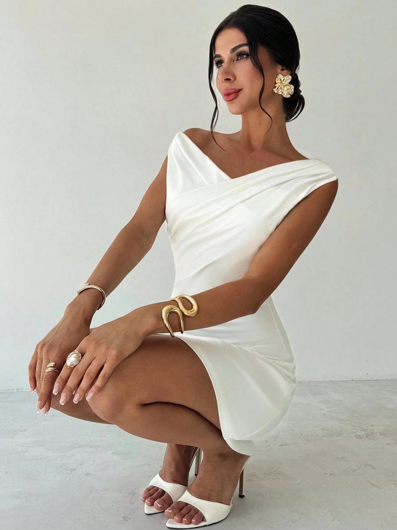 Irregular Collar Stitching Sleeveless Double Layer Slim Dress