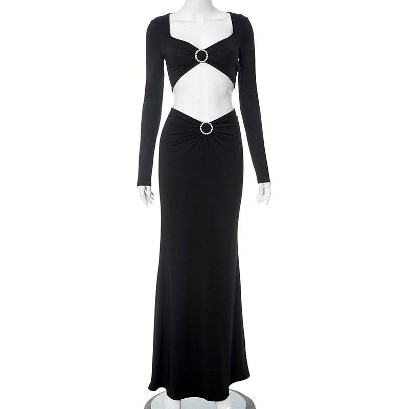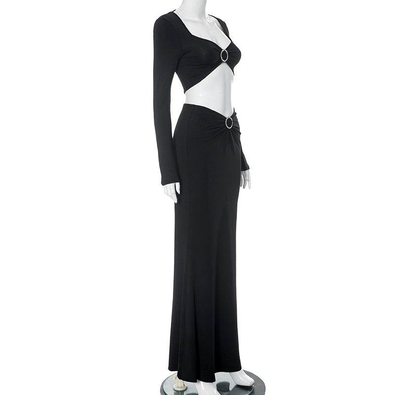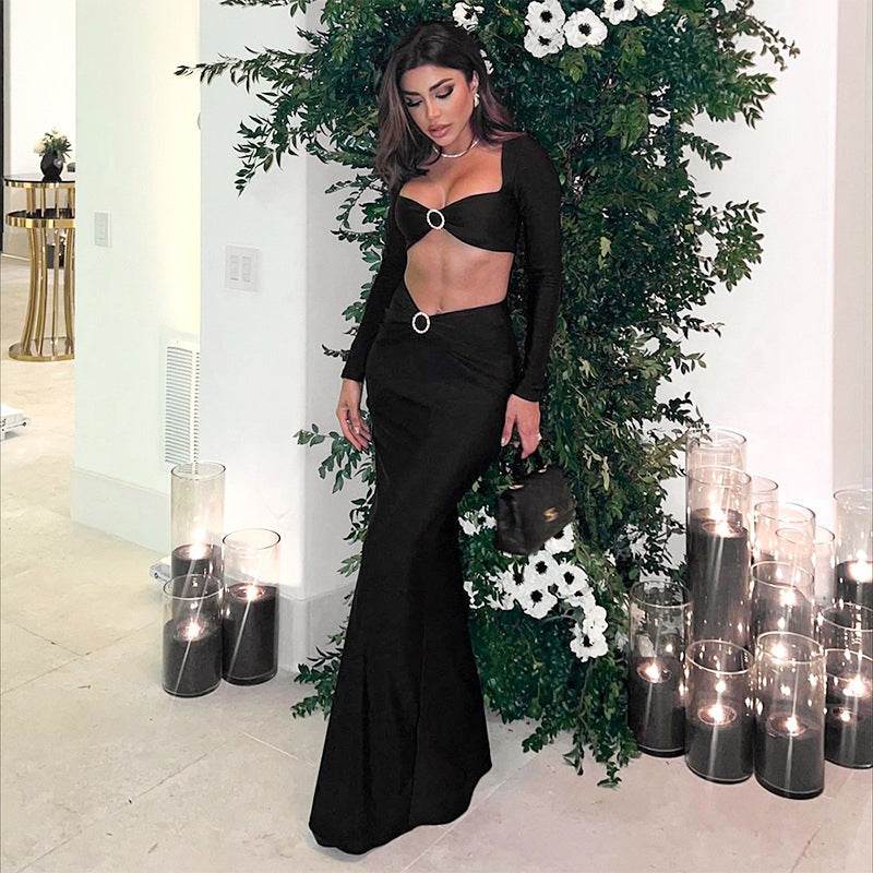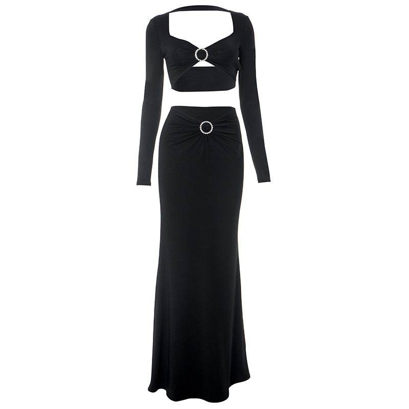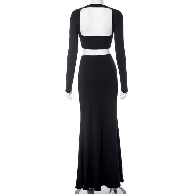 Square Neck Cropped Short Top High Waist Mopping Floor Skirt Set