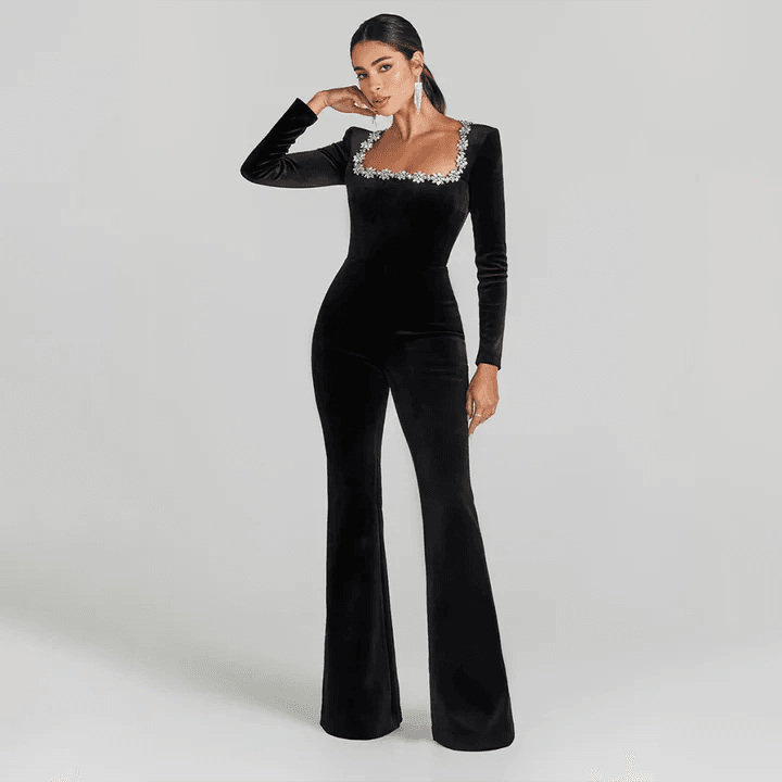 Square Neck Diamond High Waist Wide Leg jumpsuit