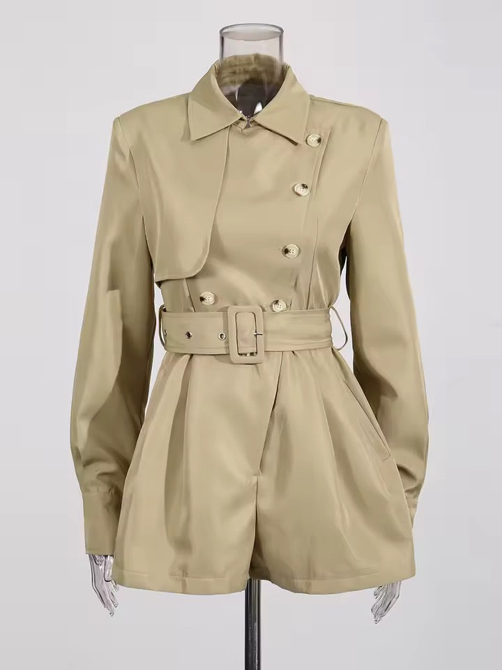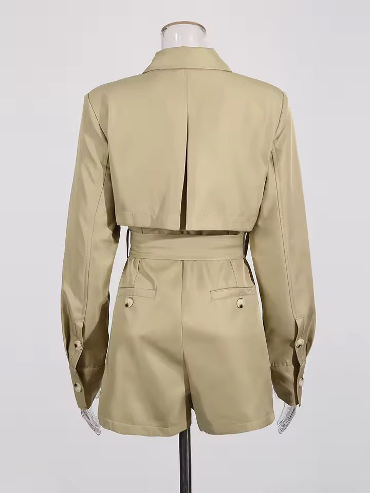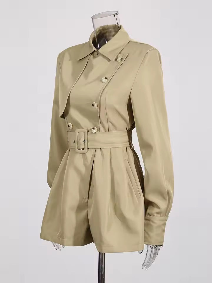 Streetwear Double-Breasted Slim Shorts Jumpsuit