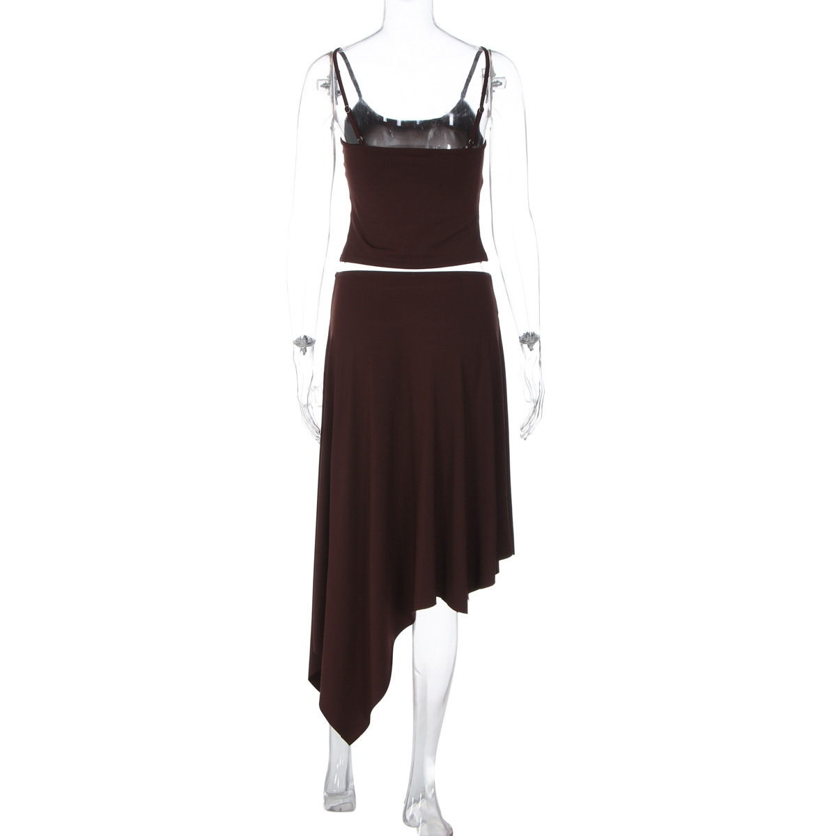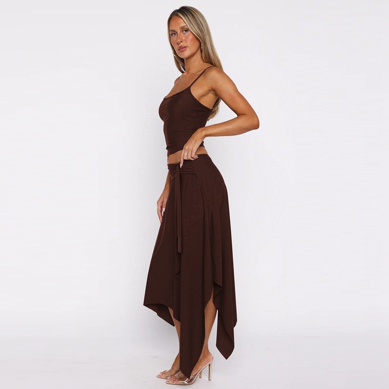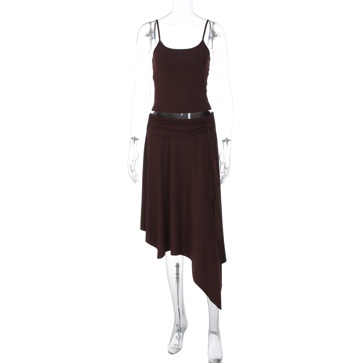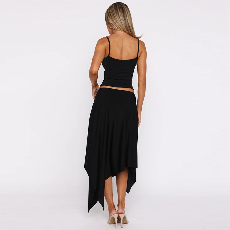 Summer Sexy Sexy Solid Color Camisole Pleated Irregular Asymmetric Skirt Two Piece Sets