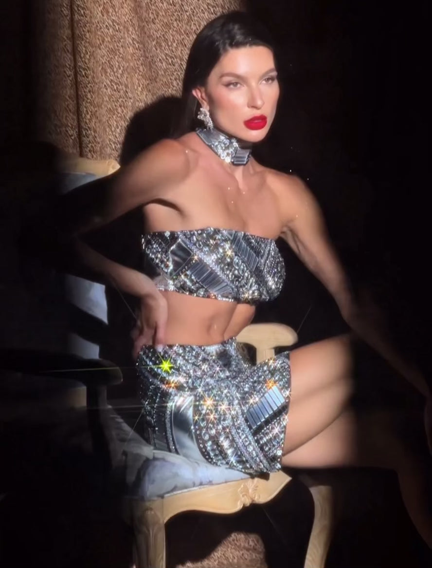 Temperament Diamond Bead Mini Dress