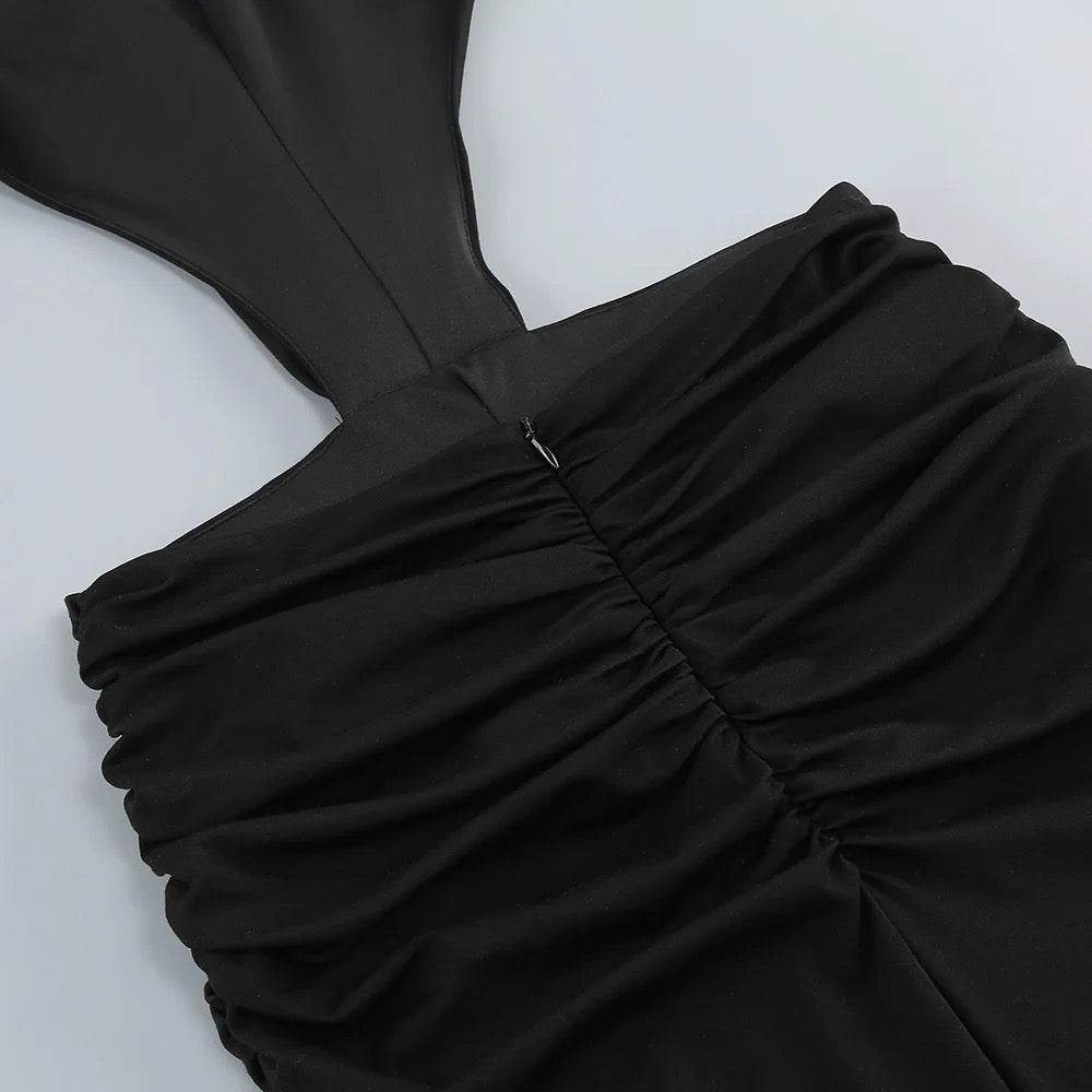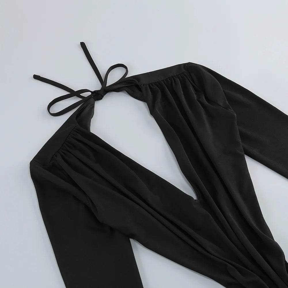 Tight Backless V-neck Long Sleeve Hollow Pleated Maxi Dress