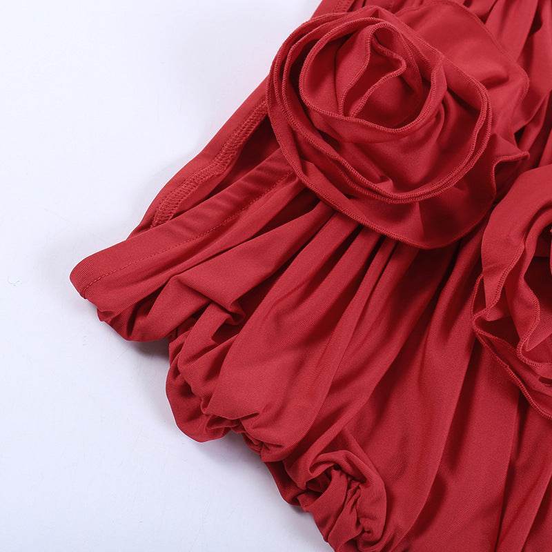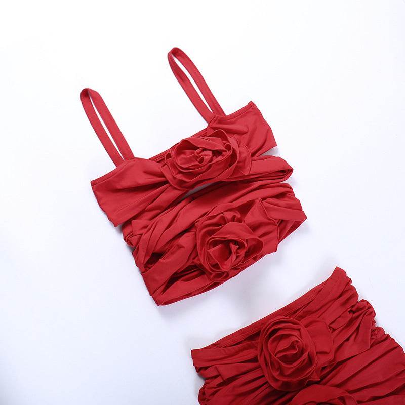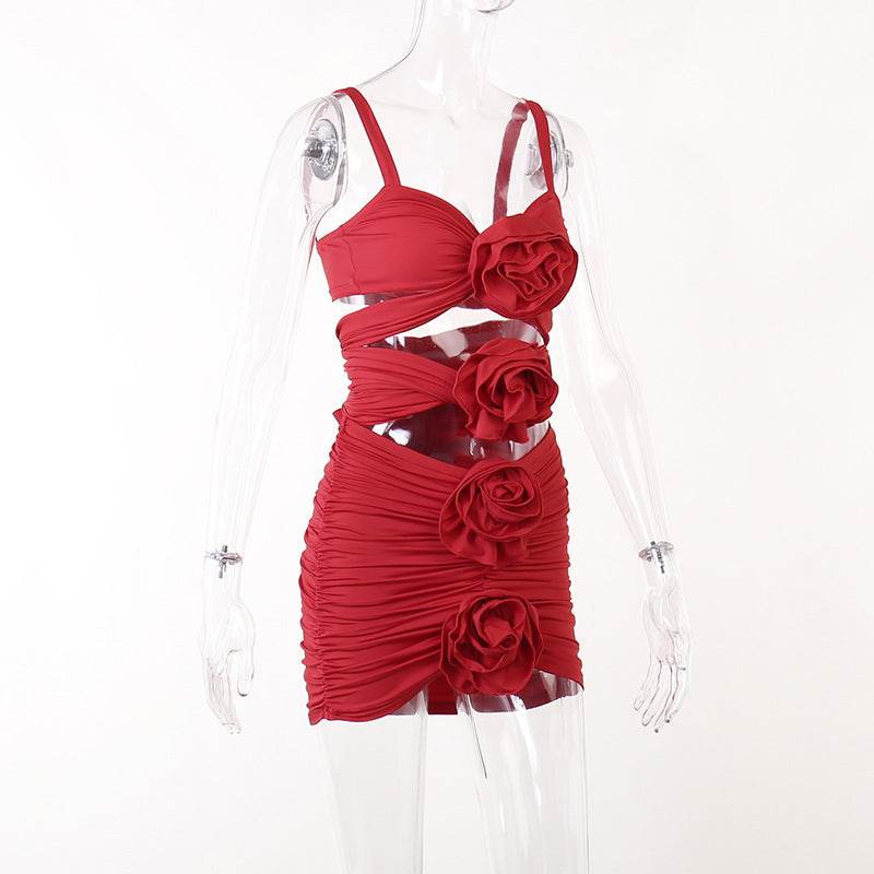 Dimensional Floral Lace Up Cutout Skirt Sets