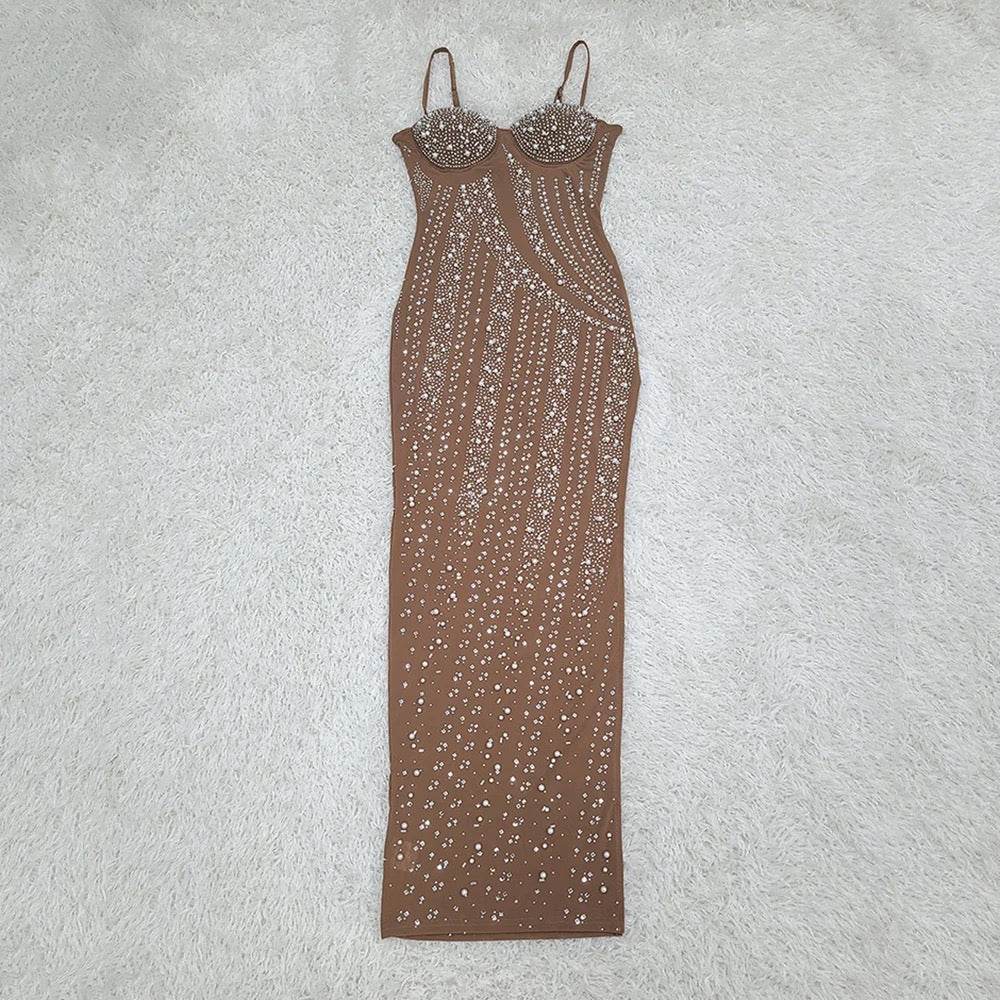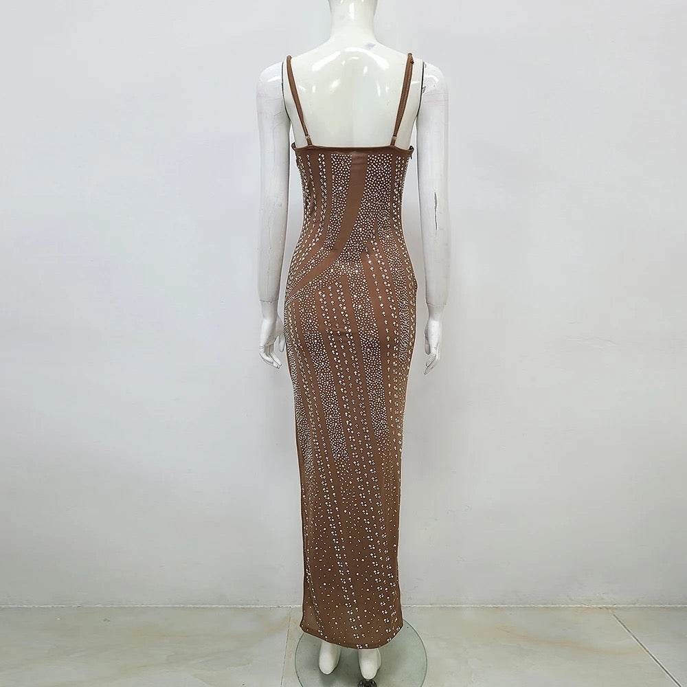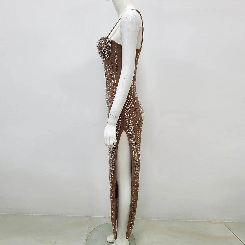 Diamond Mesh Beaded Tight Sleeveless Long Dress