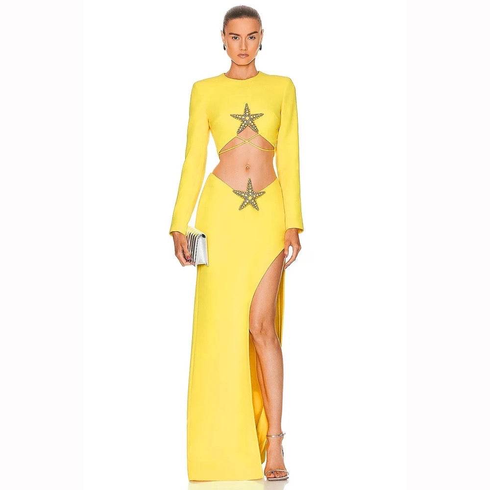 Beaded Starfish Diamond Sexy Long Sleeve Short Top set