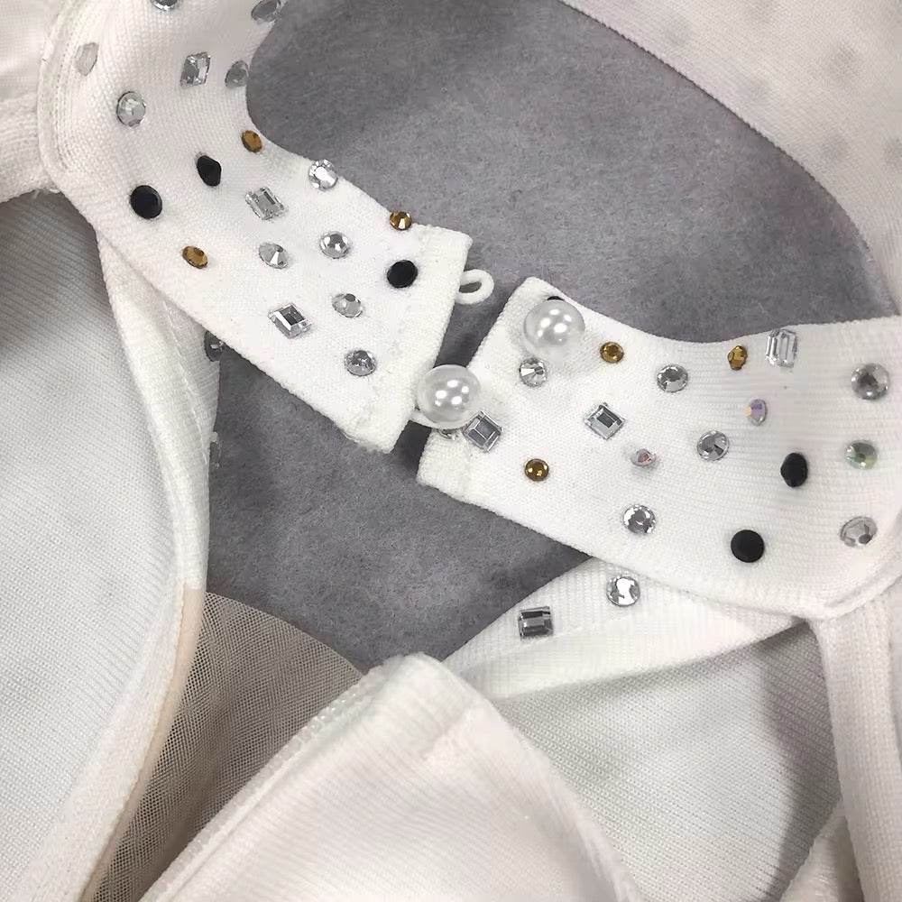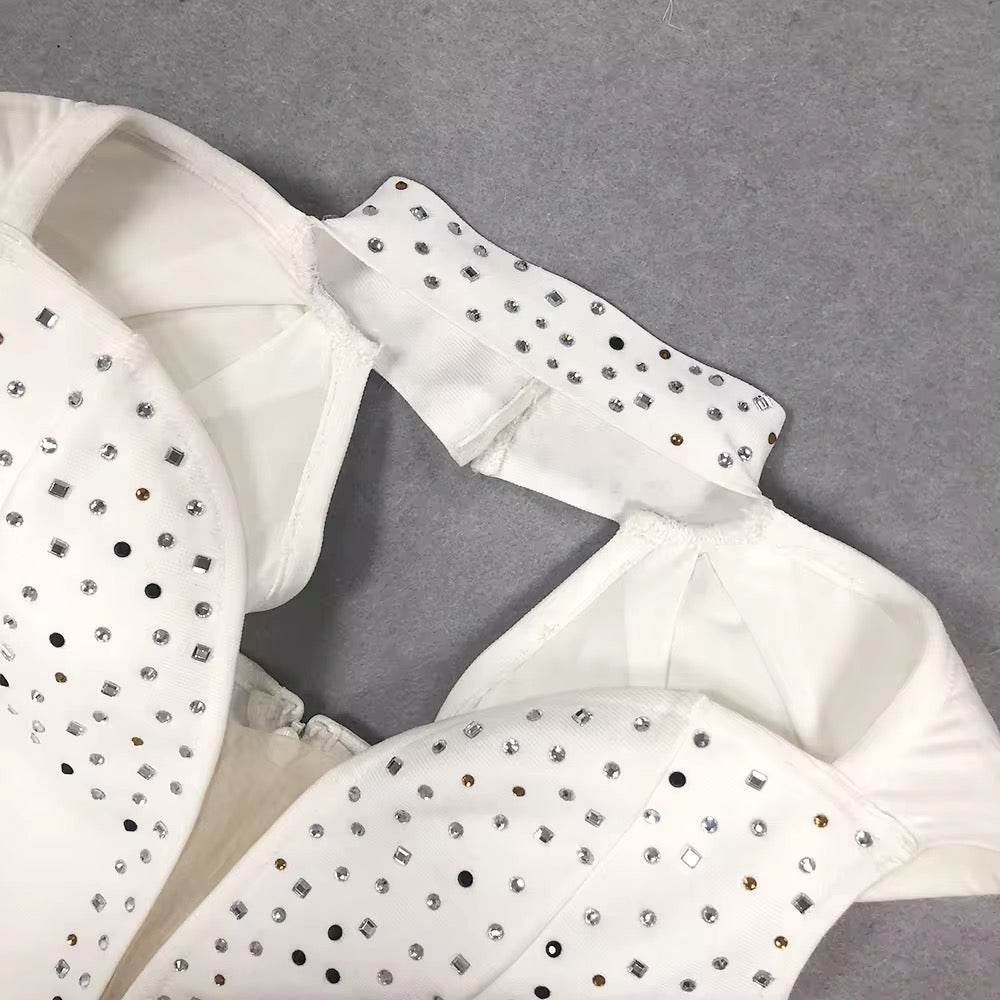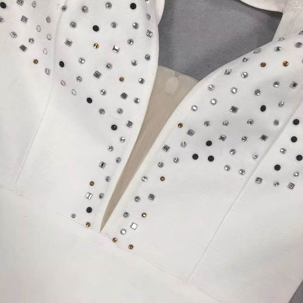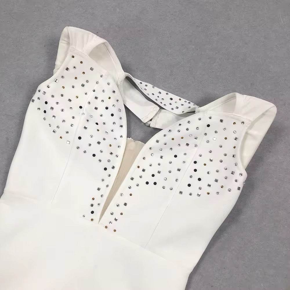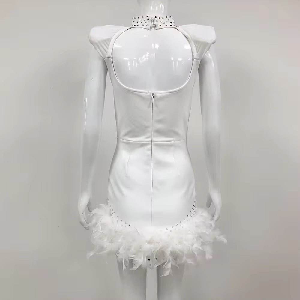V-neck Sleeveless Feather Diamond Tight Mini Bandage Dress