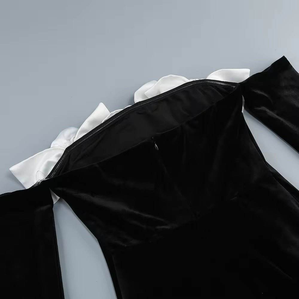 Velvet Strapless 3D Flowers Long sleeves Off Shoulder Dress