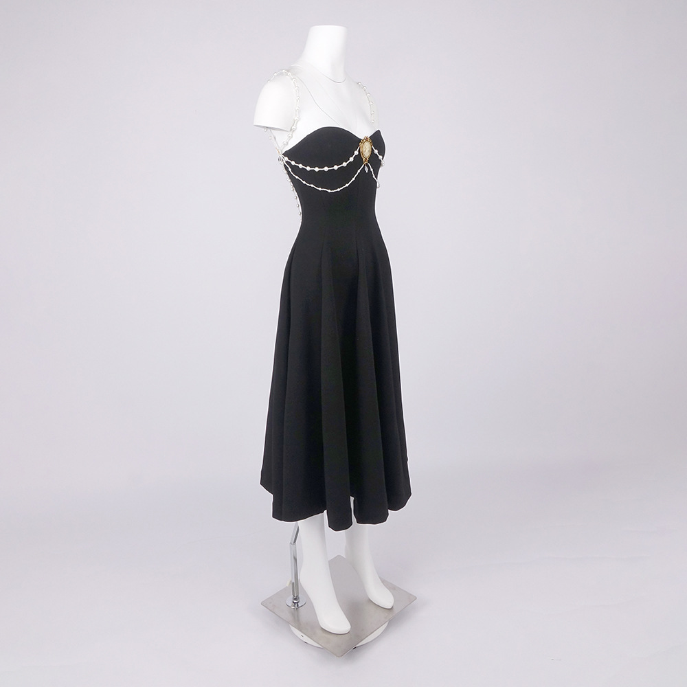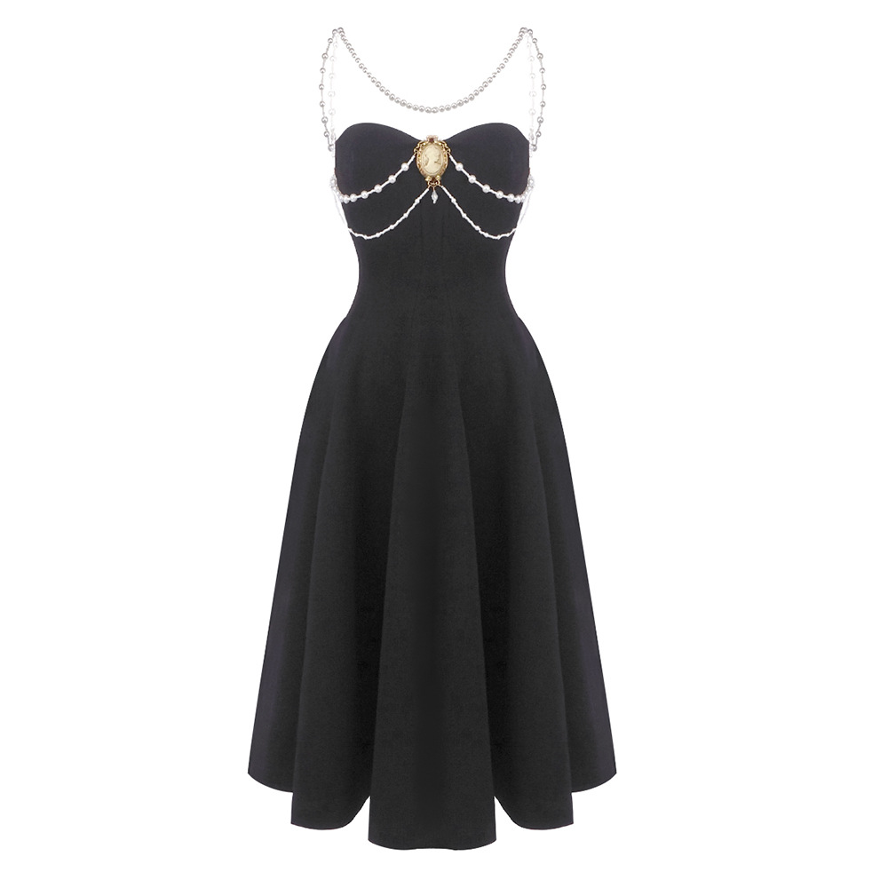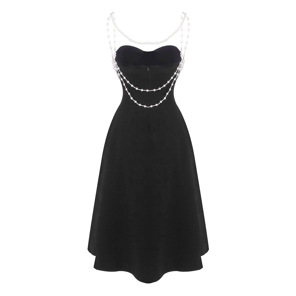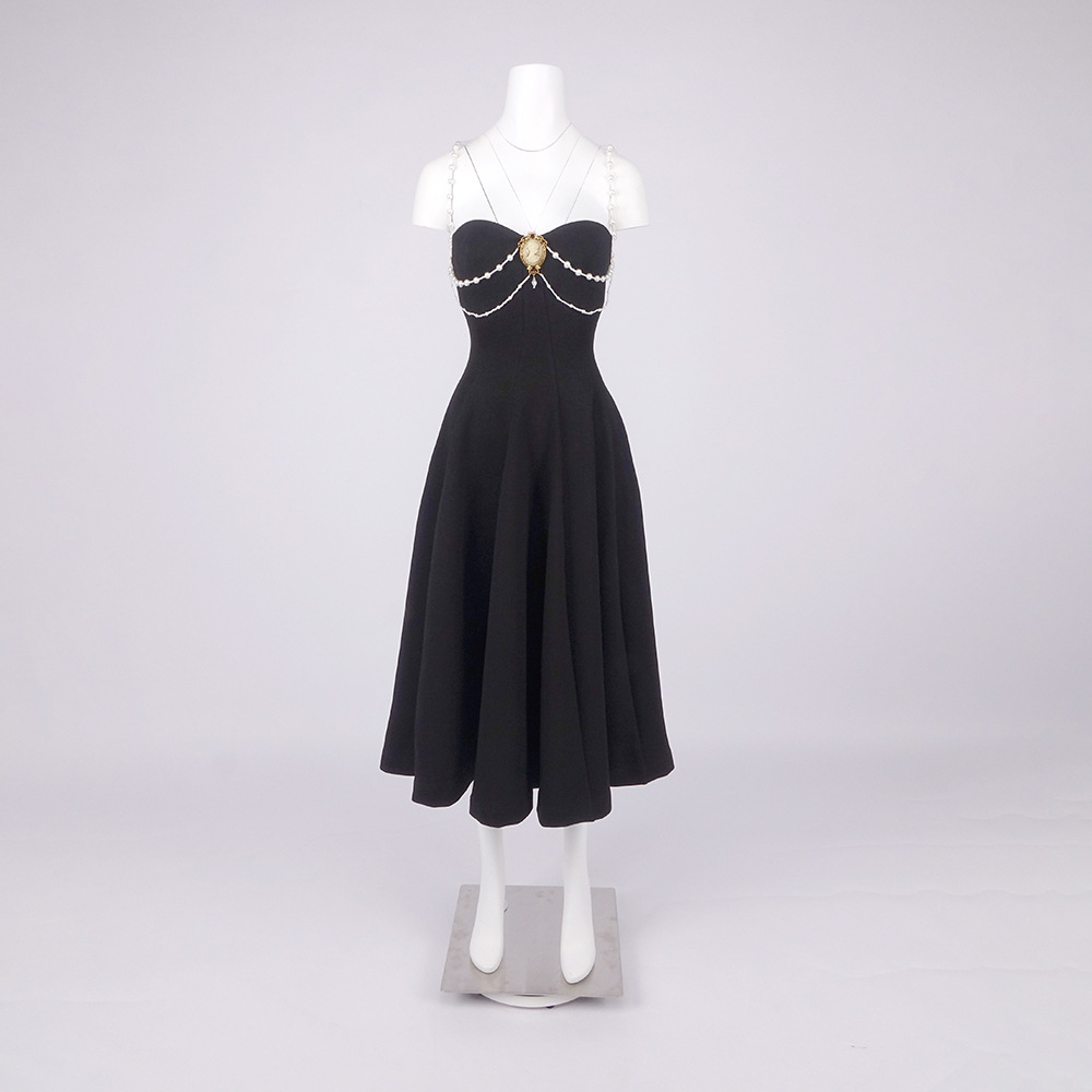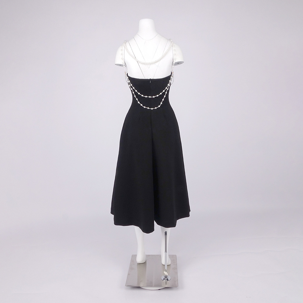 Crystal Hollow Out Cutout out Camisole Solid Color Dress Air Layer Dress