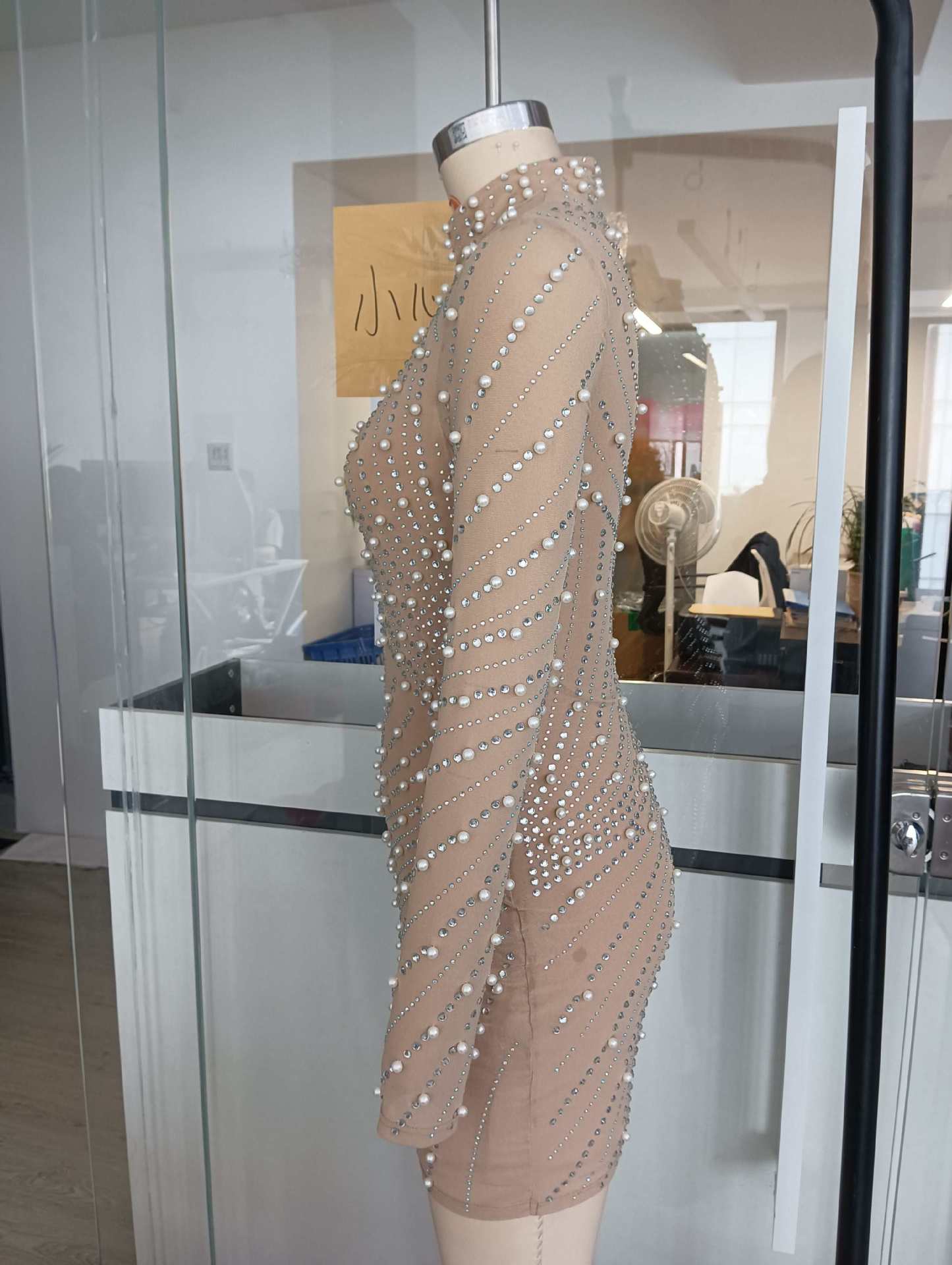 Women Clothing Sexy Tassel Rhinestone Mesh Pearl Sheath Dress for Women