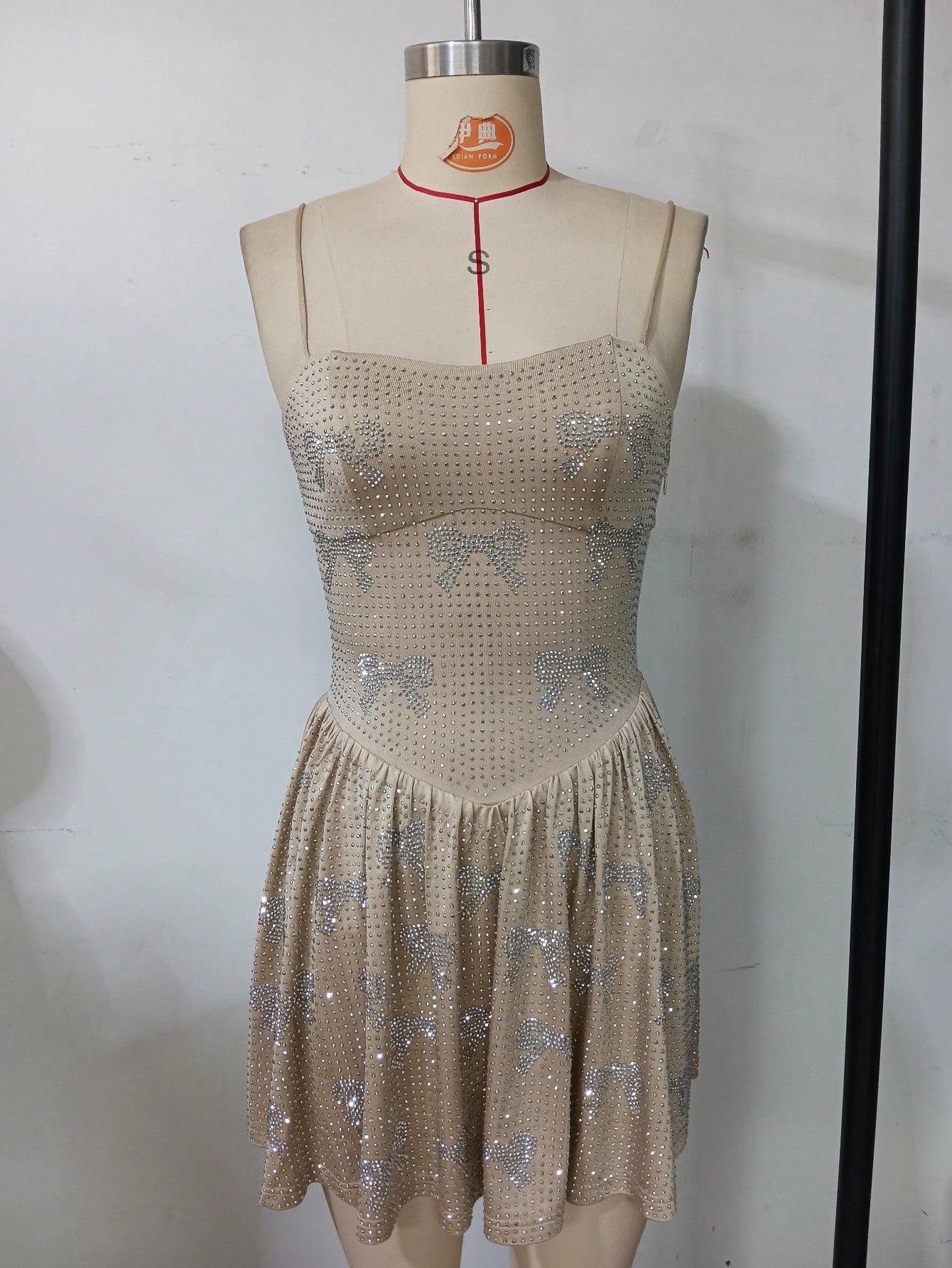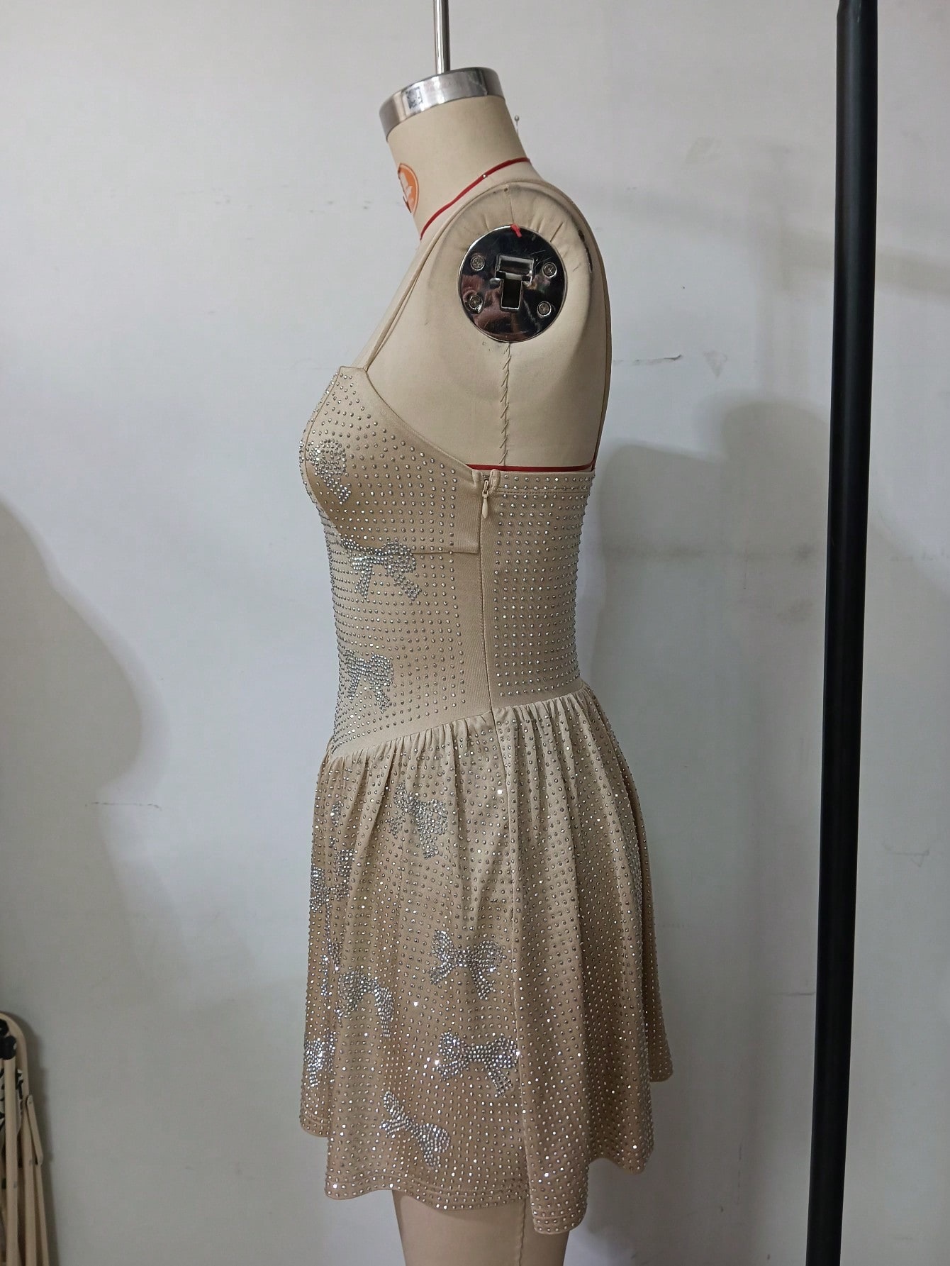 Women Clothing Strap Tube Top Sequined A line Dress Backless Diamond Embedded Sleeveless Short Dress