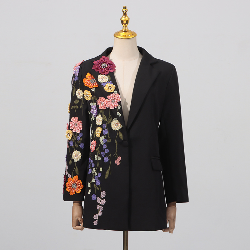 Three-Dimensional Floral Elegant Slim Fit Long Sleeve Coat blazer