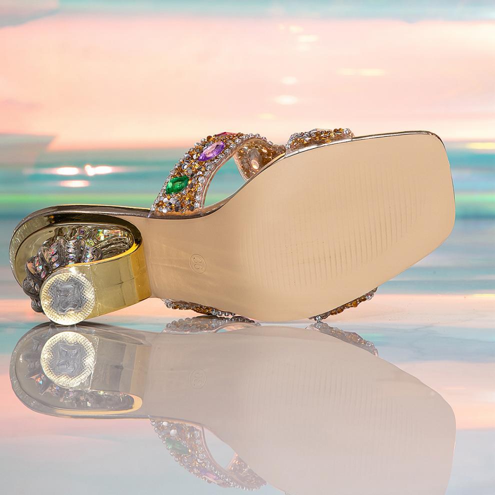Rhinestone Gem Sandals Slip on Transparent Platform Party Dress Sandals High Heels